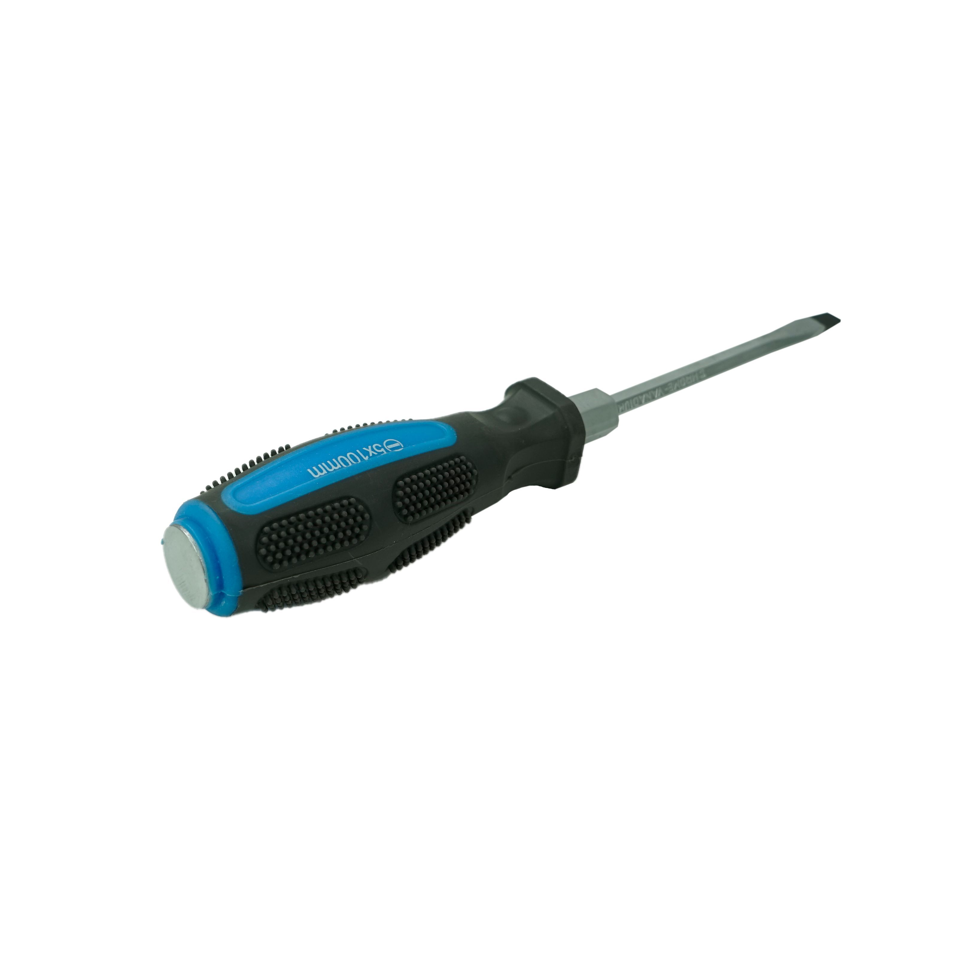 Отвертка с магнитным наконечником для работ с крепежными элементами с плоским шлицем.