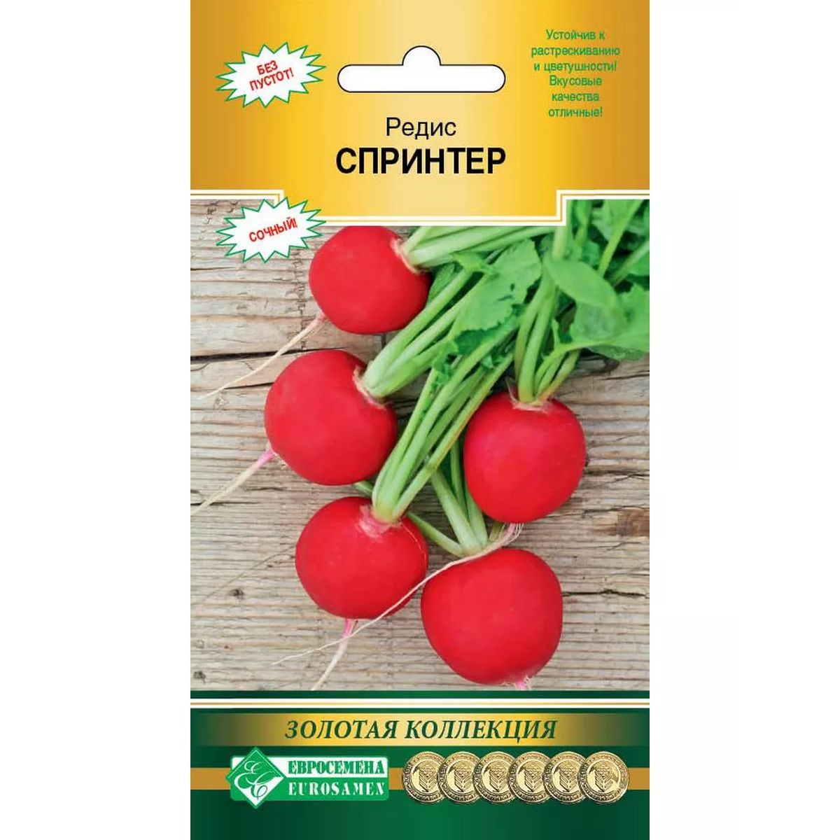 «Спринтер» – раннеспелый сорт редиса с товарной массой корнеплодов 25- 28 грамм. Корнеплод округлый, красный, головка выпуклая. Мякоть белая, плотная, сочная. Урожайность 2,8- 3 кг/м2. Отличается насыщенной яркой окраской плотных корнеплодов, устойчивостью к растрескиванию, высокими вкусовыми качествами.