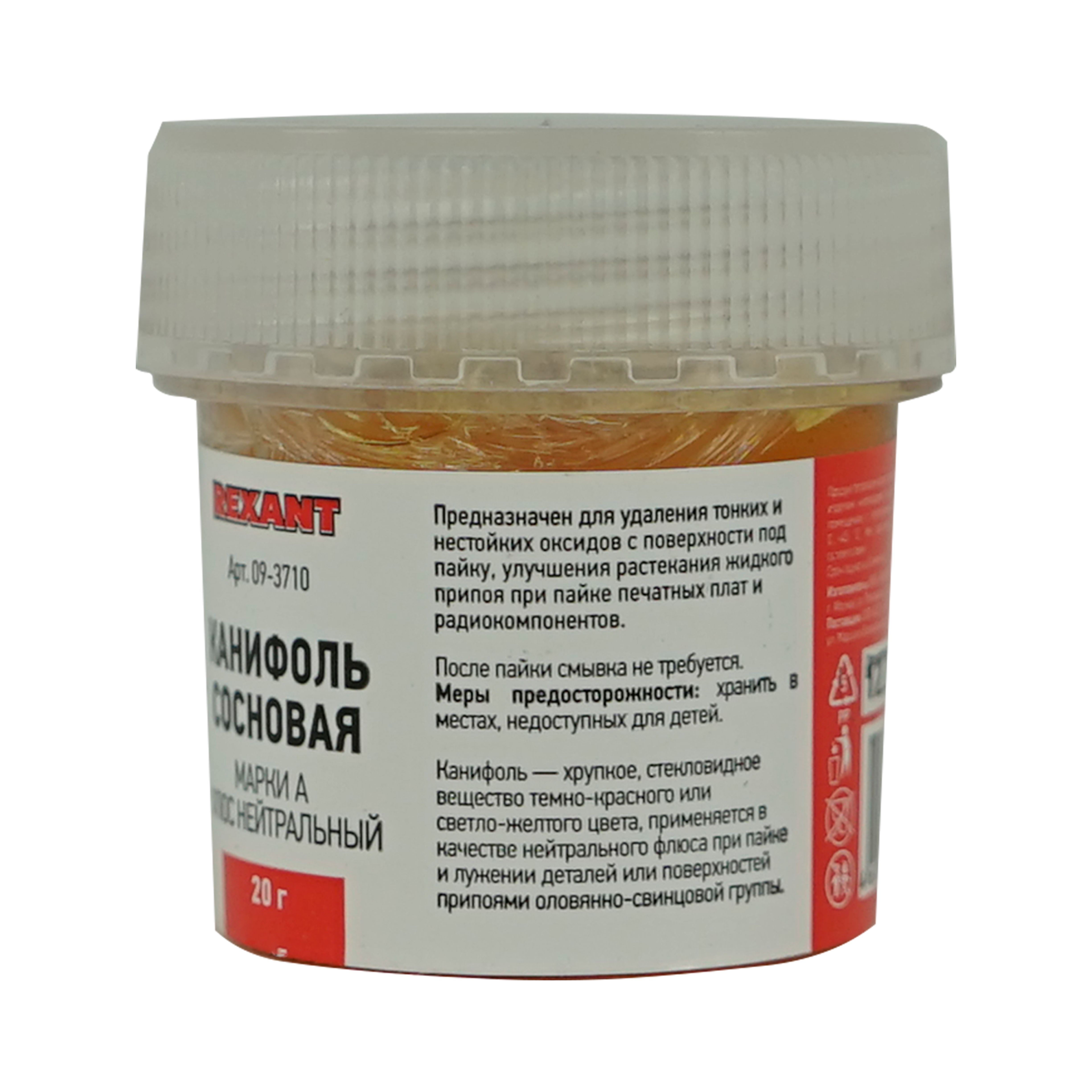 Канифоль сосновая марки А. Является хорошим диэлектриком. После пайки смывка не требуется.