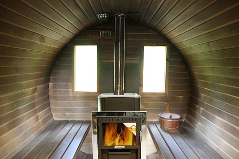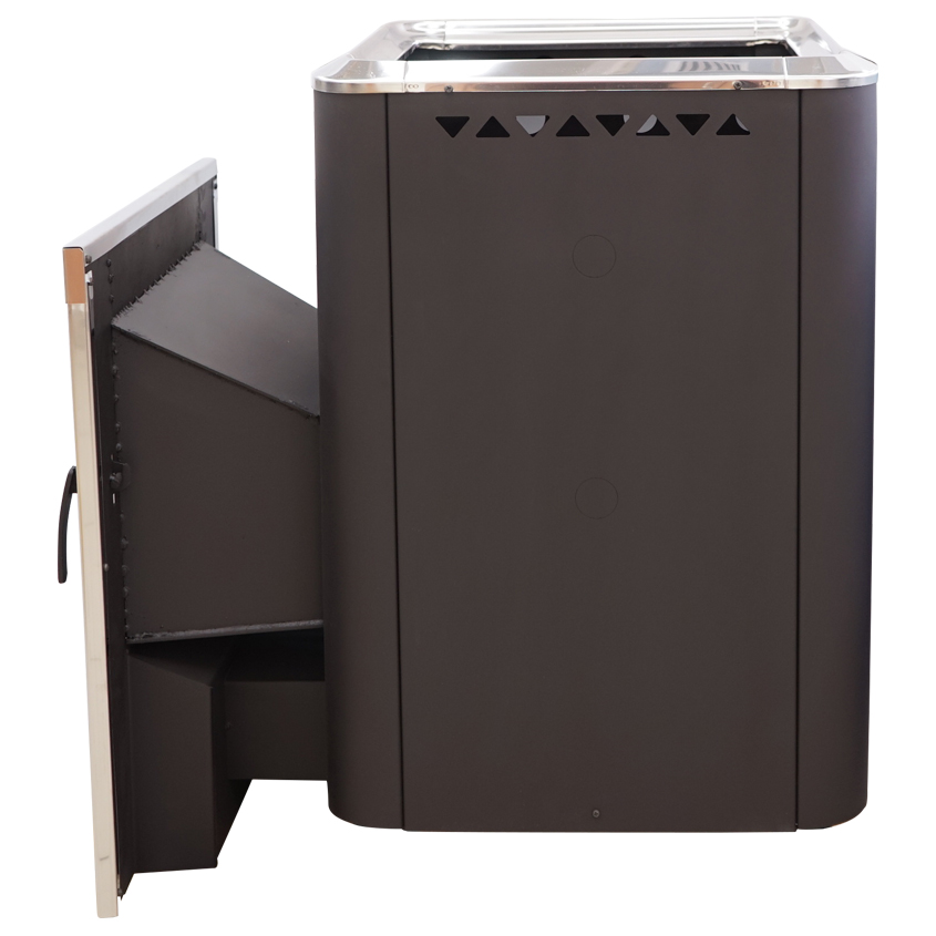 - За счет удлиненного выносного топливного канала закладку дров возможно производить из предбанника;