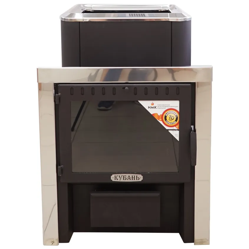 Банная печь "Кубань" является модифицированной версией печи "Сибирь". Она вобрала в себя все самые передовые характеристики, дополнив это обновленным дизайном и установкой панорамной дверцы топочной камеры.