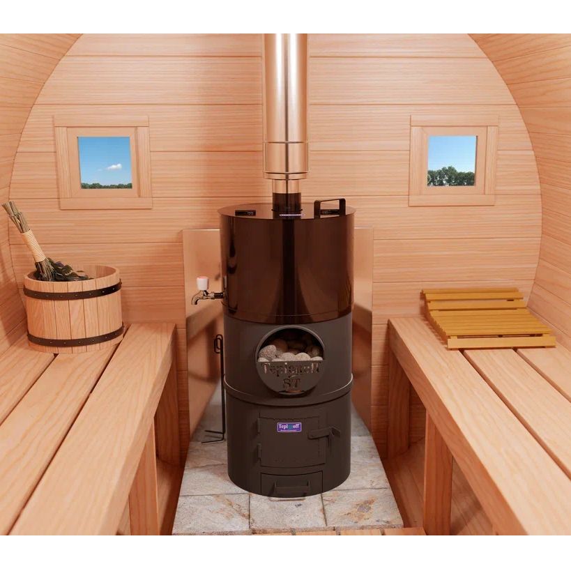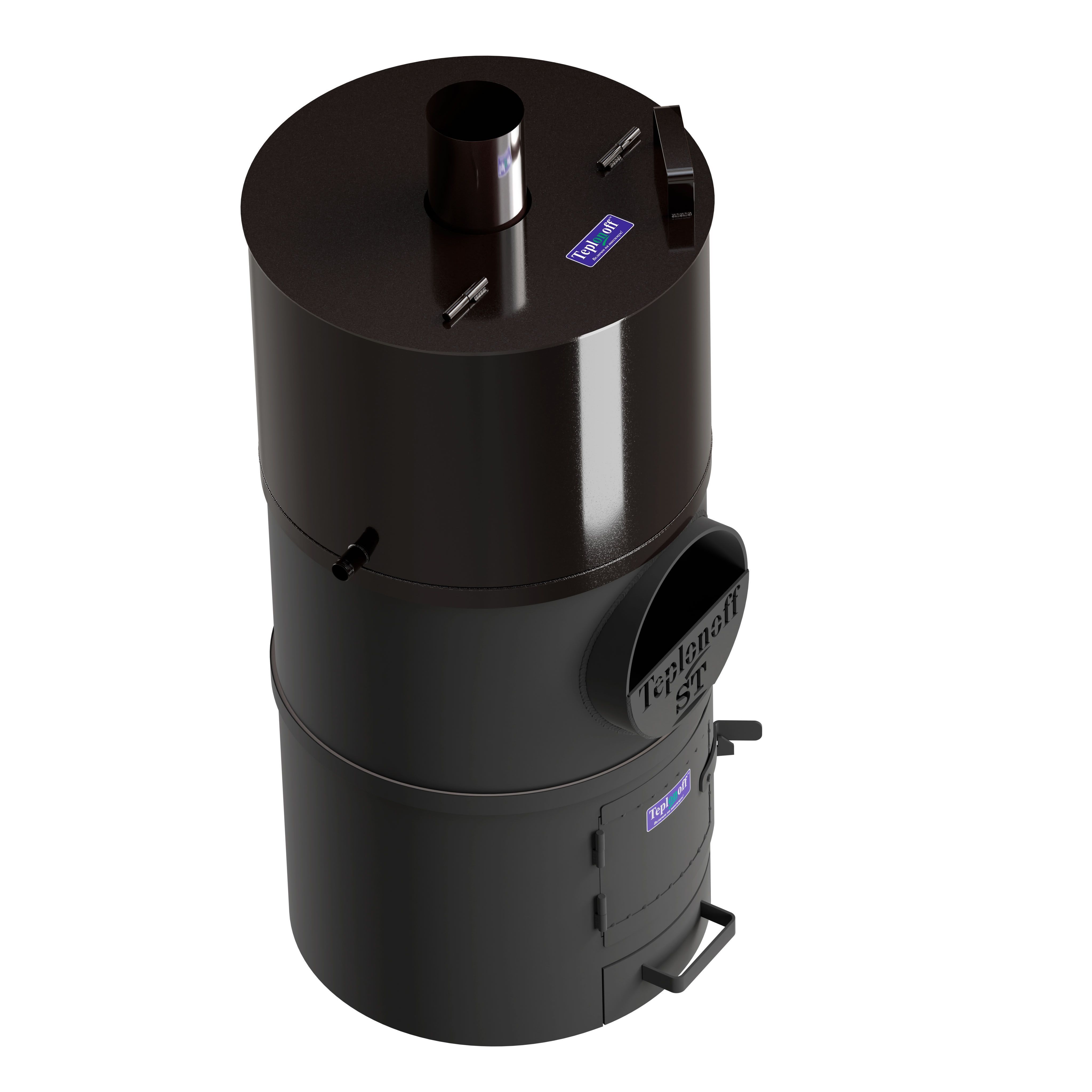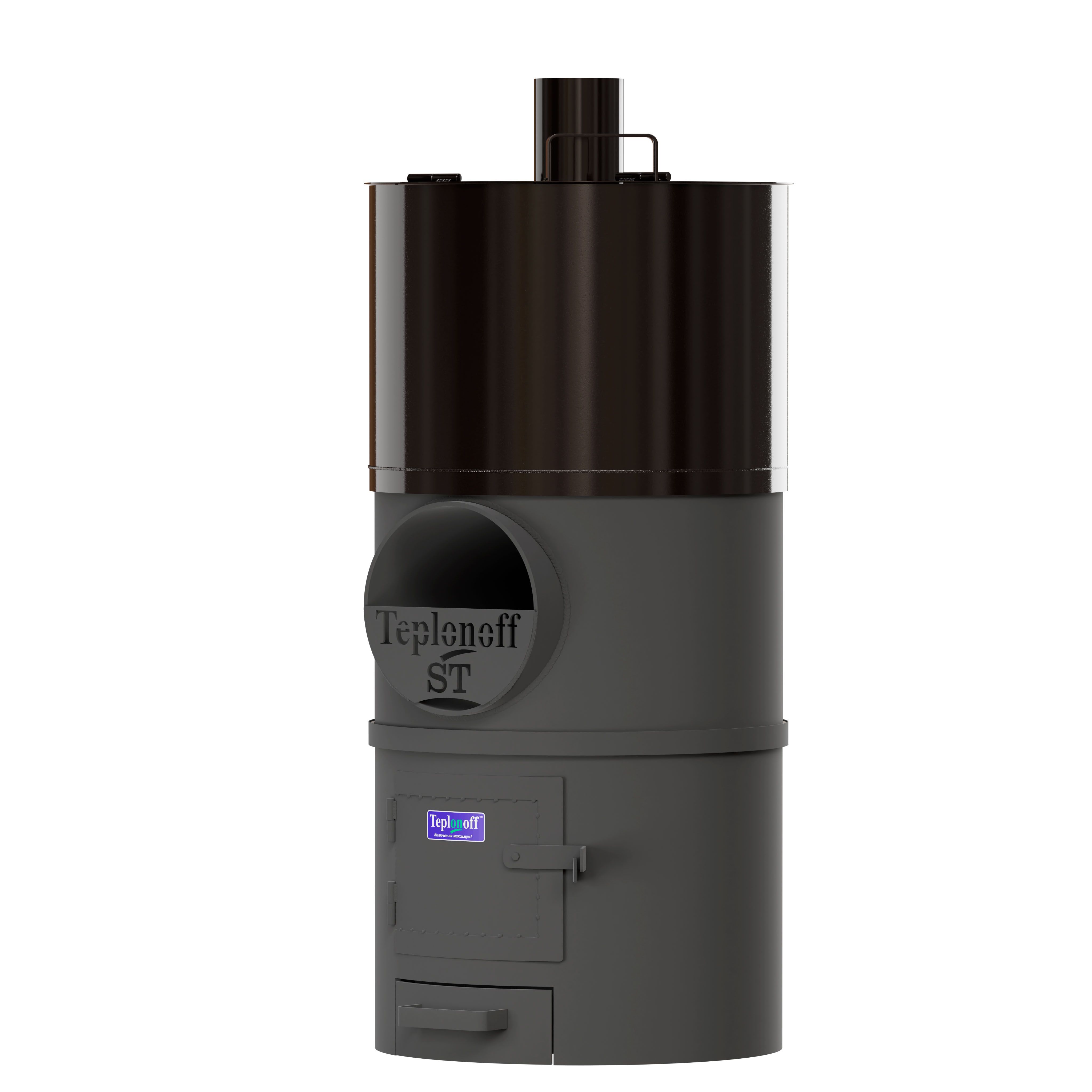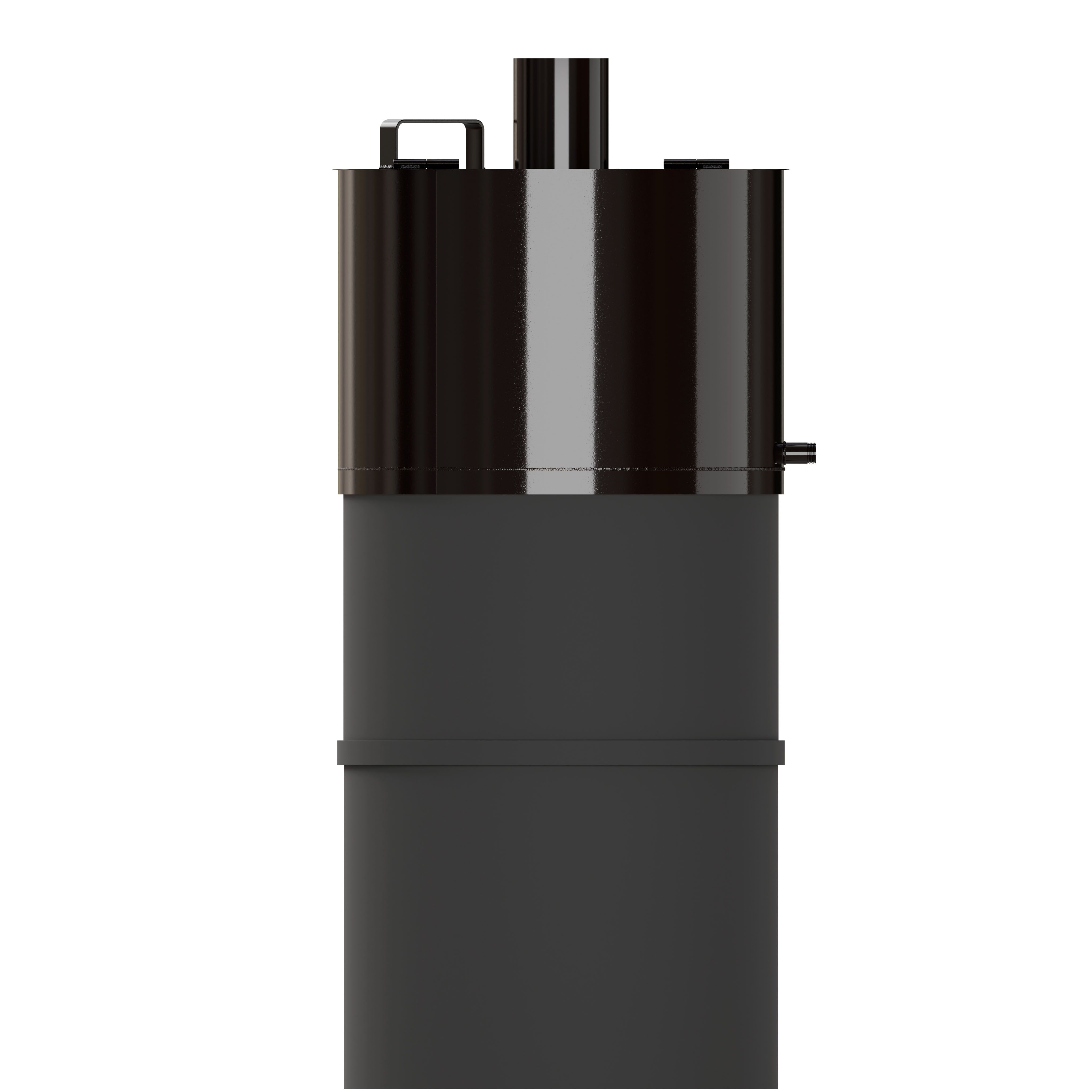 Банная печь трехкомпонентная, изготовлена из трубы 530*8, БЕЗ ВЫНОСНОЙ ТОПКИ. Водогрейный бак на 85 литров из ЧЁРНОГО МЕТАЛЛА (полимерное покрытие). Топливо – дрова, уголь.