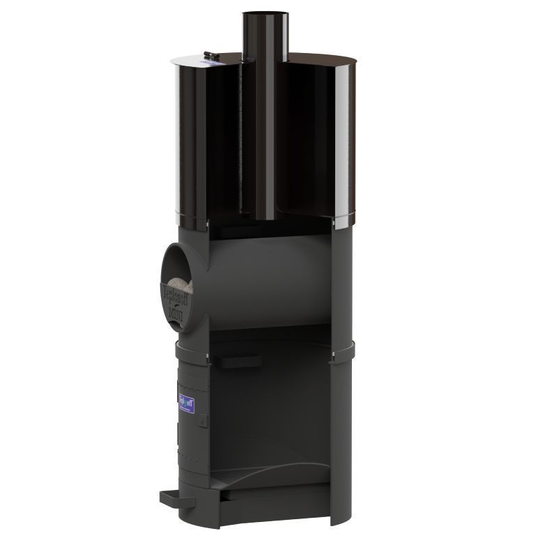 Банная печь трехкомпонентная, изготовлена из трубы 426*6…8, БЕЗ ВЫНОСНОЙ ТОПКОЙ. Водогрейный бак на 55 литров из ЧЕРНОГО МЕТАЛЛА (полимерное покрытие). Топливо – дрова, уголь.