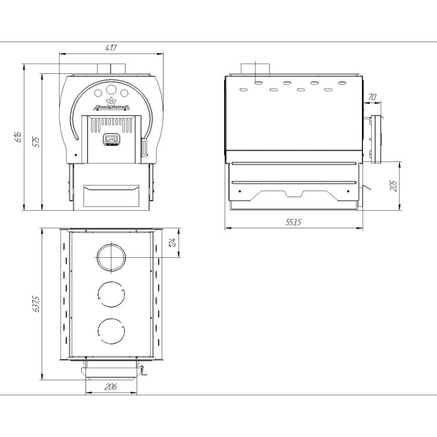 • Быстрый нагрев помещения. Динамичный нагрев воздуха и его равномерное распределение обеспечивают мощные конвекционные потоки, которые проходят в каналах между топкой и кожухом печи.