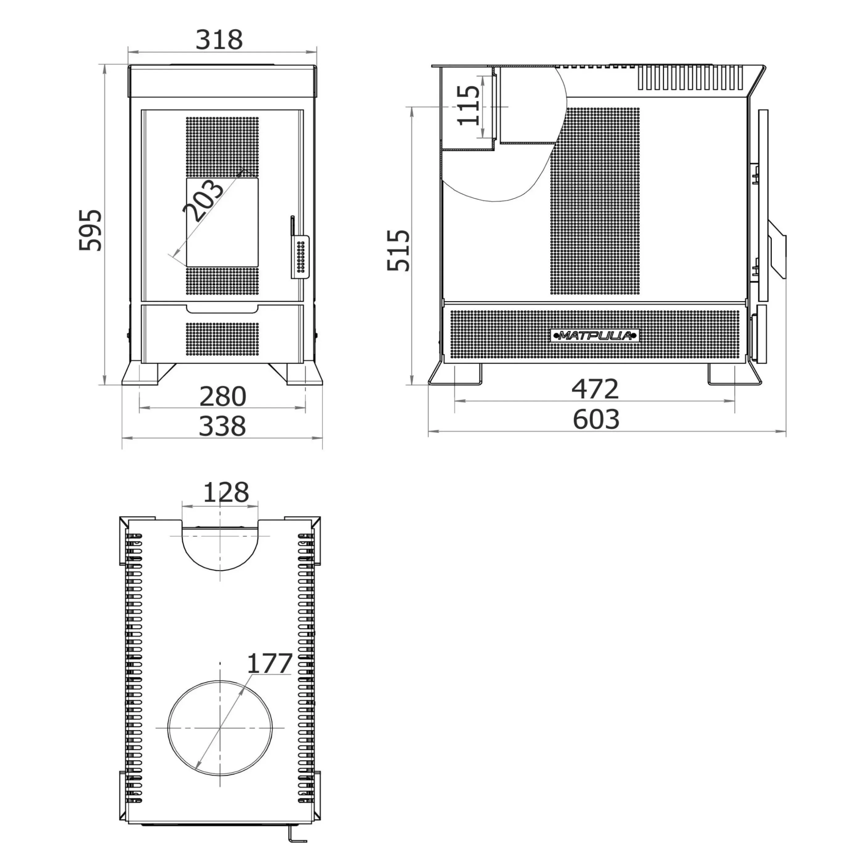 - Качество. Матрица-100 изготовлена из высококачественных материалов, сталь 08PS толщиной 3мм, пластина из нержавеющей стали в задней части топки для защиты от прогорания, чугунный колосник.