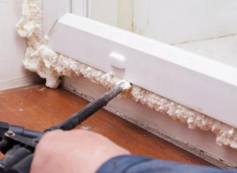 При выборе пены обязательно нужно учитывать расширение материала, особенно важно – при монтаже окон и дверей! Для этих работ необходимо, чтобы первичное расширение было максимальным, а вторичное – минимальным, иначе может образоваться трещина на стекле или пена выдавит дверную коробку.
