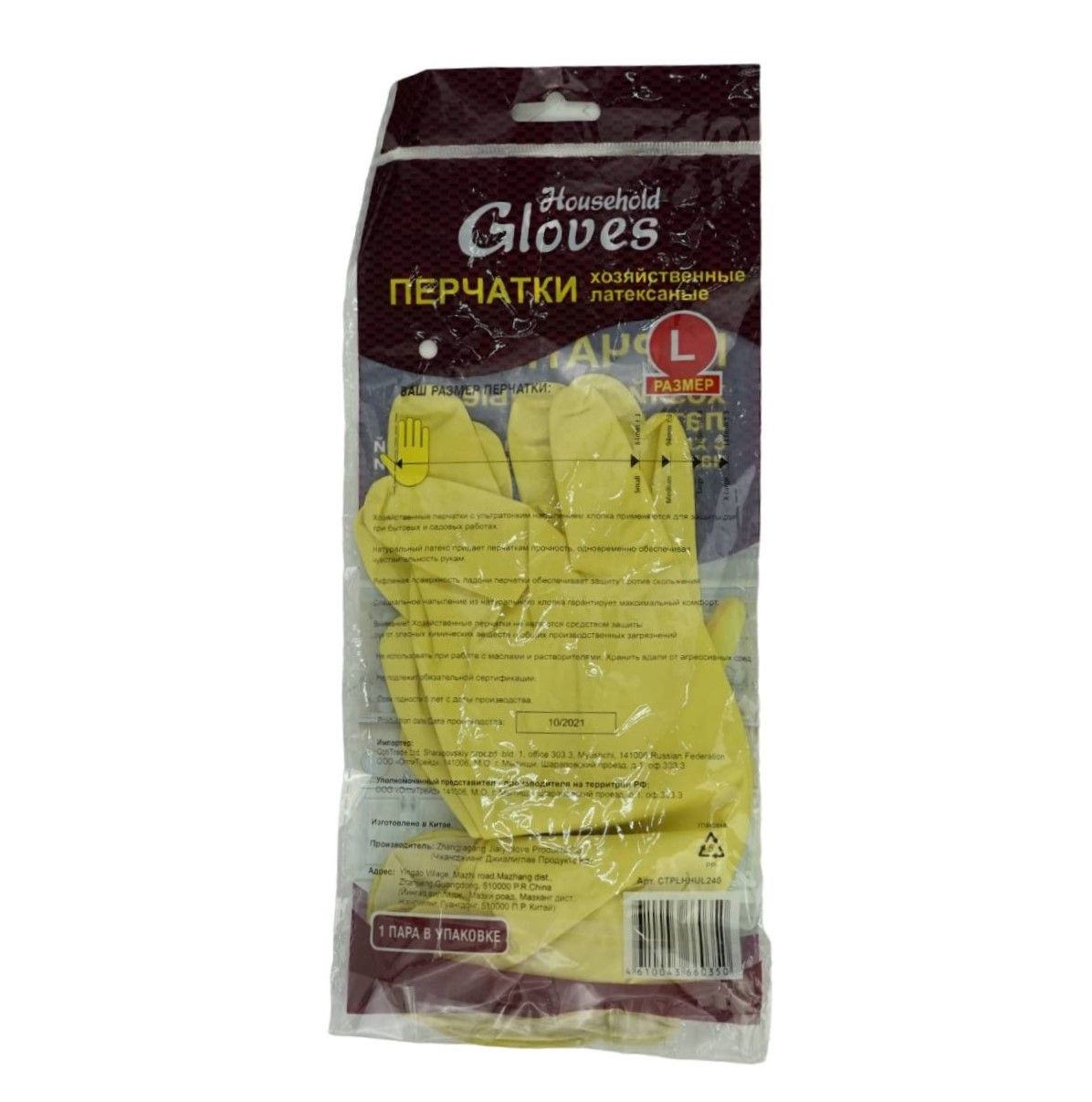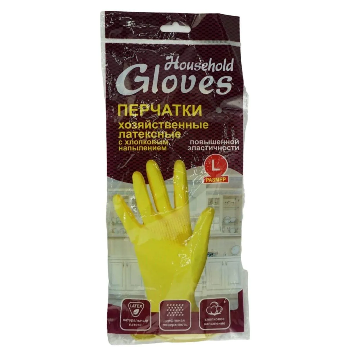 Перчатки хозяйственные латексные L (с напылением) для защиты рук от неагрессивных жидкостей, грязи, стойкость к химическому воздействию водных растворов.