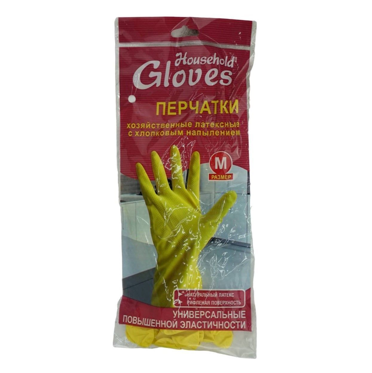 Перчатки хозяйственные латексные S/M (с напылением) для защиты рук от неагрессивных жидкостей, грязи, стойкость к химическому воздействию водных растворов.