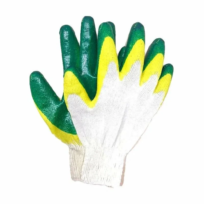 Перчатки трикотажные с двойным латексным покрытием для защиты рук от мелких механических повреждений и общих производственных загрязнений.