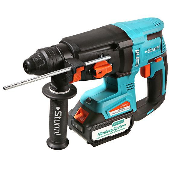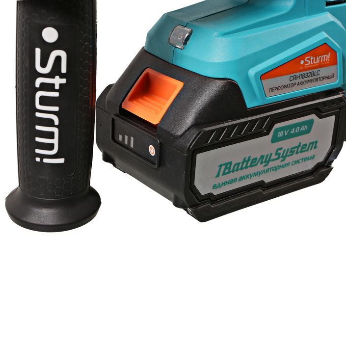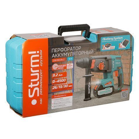 Аккумуляторный перфоратор Sturm! с патроном под оснастку SDS+ является частью системы 1BatterySystem и совместим со всей линейкой инструмента данной системы. Обладает оптимальными массогабаритными показателями и выверенной эргономикой – максимально удобен при проведении работ на высоте и в условиях с затрудненным доступом. Инструмент оснащен бесщеточным электромотором Brushless Motor, характеризующимся на 30% большей производительностью в сравнении с обычными коллекторными моторами и лучшей долговечностью, – отлично противостоит кратковременным перегрузкам и не склонен к перегреву. Перфоратор имеет три режима работы – в зависимости от поставленной задачи, пользователь выбирает нужный: сверление, сверление с ударом, удар. Также предусмотрен отдельный режим поворота оснастки. Для комфорта работы в условиях с недостаточным освещением модель оборудована эффективной LED-подсветкой рабочей зоны. В комплектацию перфоратора входят аккумуляторная батарея емкостью 4.0 А*ч, импульсное зарядное устройство, а также прочный пластиковый кейс для удобства хранения и транспортировки.