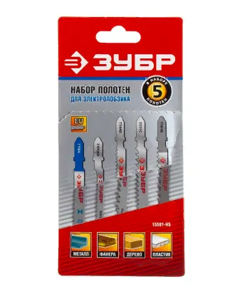 Набор ЗУБР "МАСТЕР" Полотна для эл/лобзика, по дереву и металлу, T-хвост, 5шт (15591-H5). Изготовлены на полностью автоматизированных производственных линиях с применением новейших методов шлифовки, разводки и заточки зубьев.