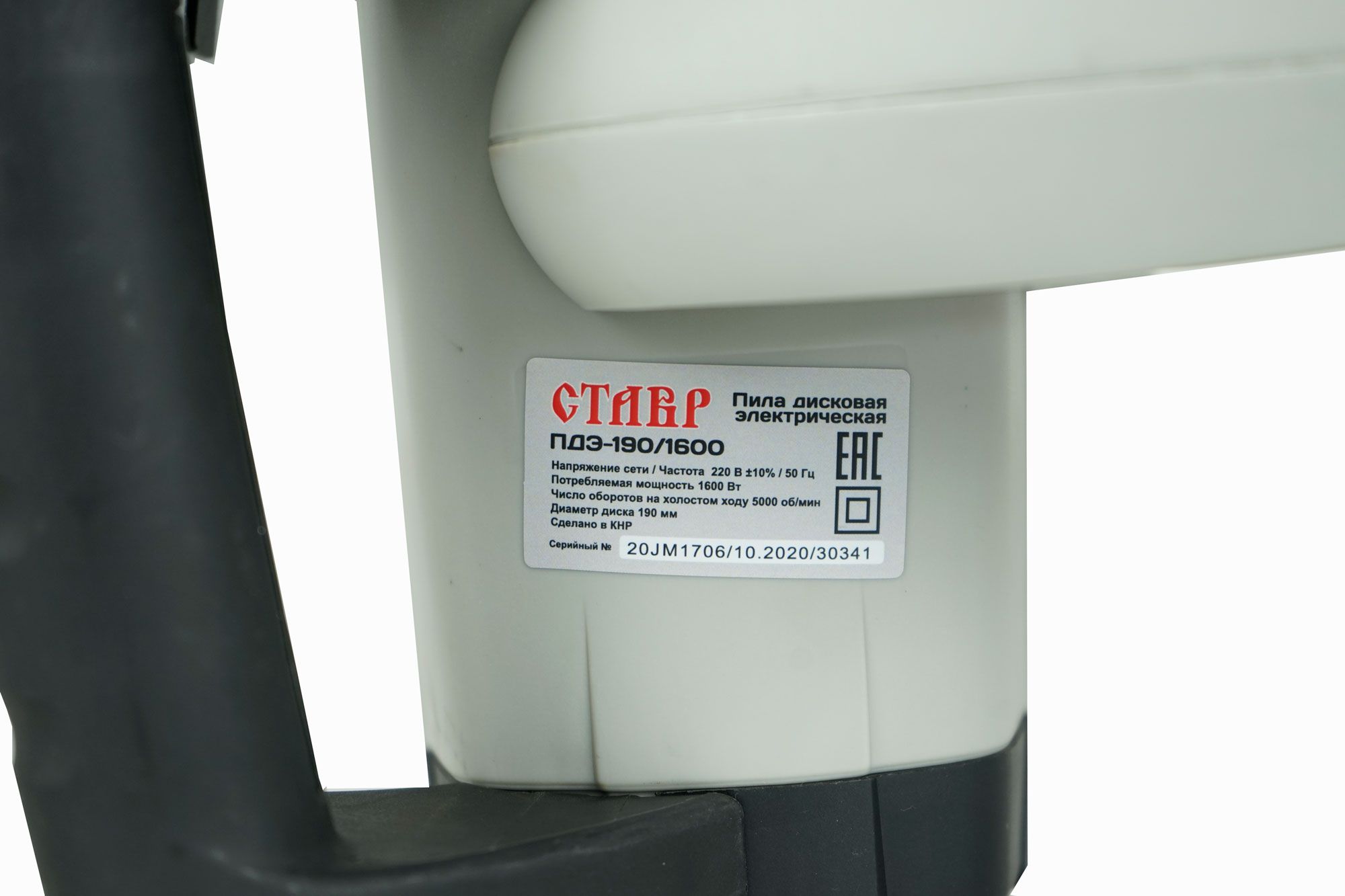 Электропила дисковая СТАВР 1600 Вт, d 190х20мм, 5000об/мин, глубина 63мм, ПДЭ-190/1600.
