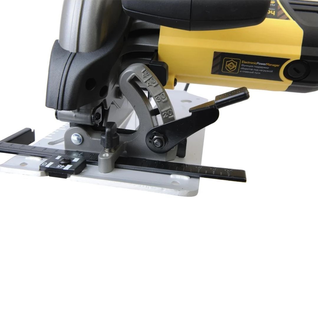 • Возможность стационарного крепления – позволяет фиксировать пилу на рабочем столе, превращая её в стационарный инструмент для более точной работы с крупногабаритными заготовками.
