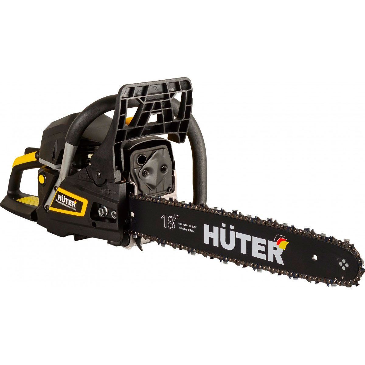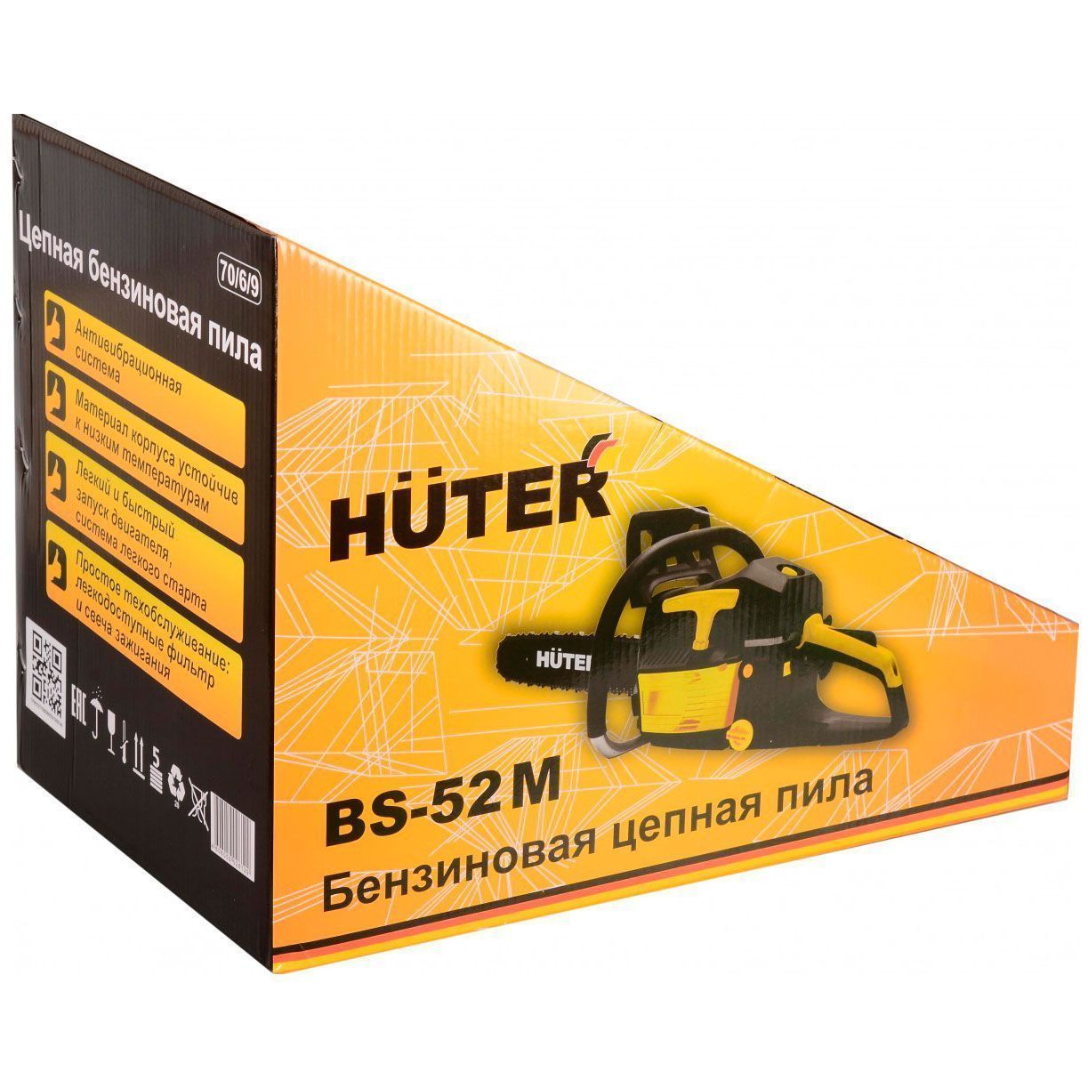 HUTER BS-52M работает от двухтактного бензинового двигателя мощностью 3,8 л.с., объемом 52 см³. Надежность повышает хромированная поршневая группа. Модель достаточно мощная, способна выполнять большие объемы работ. BS-52M идентична BS-52, произошло изменение в длине шины (BS-52 - 20 дюймов; BS-52M – 18 дюймов) и количестве звеньев цепи (BS-52 - 76 звеньев; BS-52M – 72 звена). Можно сказать, что BS-52M - более компактная версия BS-52 при прочих сходных характеристиках.