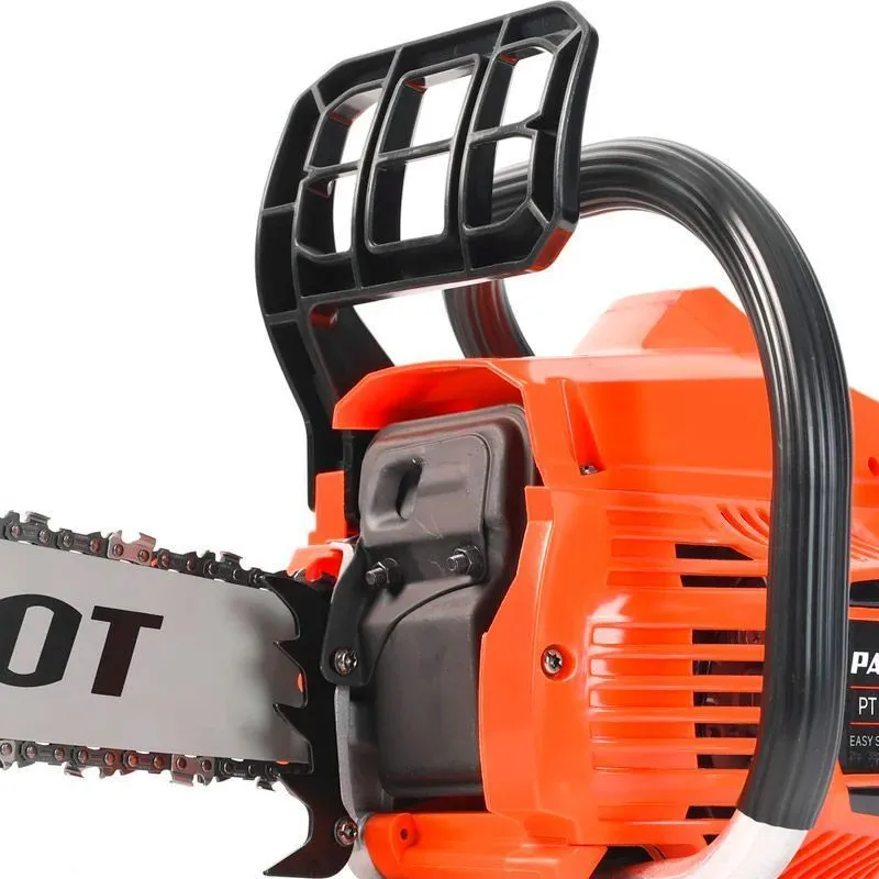 Бензопила PATRIOT – мощный инструмент для бытовых нужд. Идеально справится с обрезанием кустов и небольших деревьев. Конструкция позволяет легко разобраться в управлении и дает возможность работать в труднодоступных местах. Данная линейка бензопил фирмы Patriot оснащена тормозом цепи, который выполнит мгновенную остановку цепи в непредвиденных случаях, и блокировкой рычага газа для предотвращения случайного срабатывания.