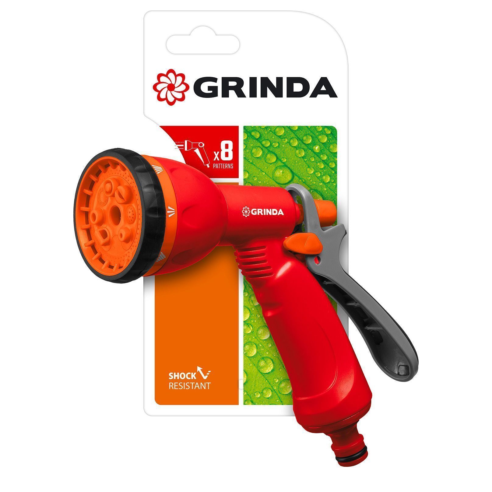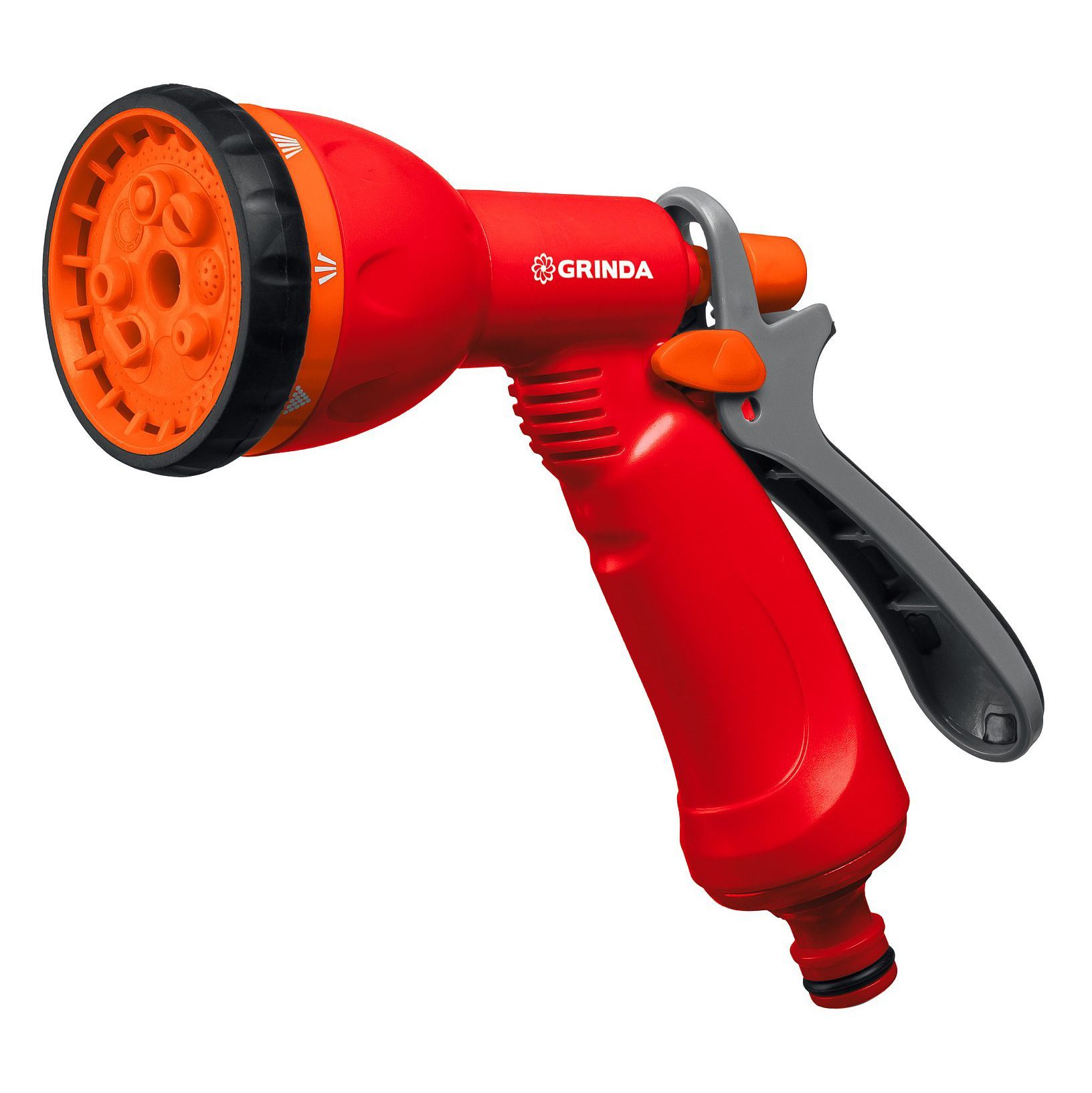Пистолет-распылитель Гринда предоставляет возможность выбора одного из 6 режимов полива путем вращения специального регулятора над курком: жесткая струя, слабая струя, центр, плоская струя, душ, аэрирование. Фиксатор струи значительно облегчает работу и снижает затрачиваемые усилия, нет необходимости зажимать курок, достаточно выбрать нужный режим полива и зафиксировать его. Металлический корпус изделия имеет длительный период эксплуатации.