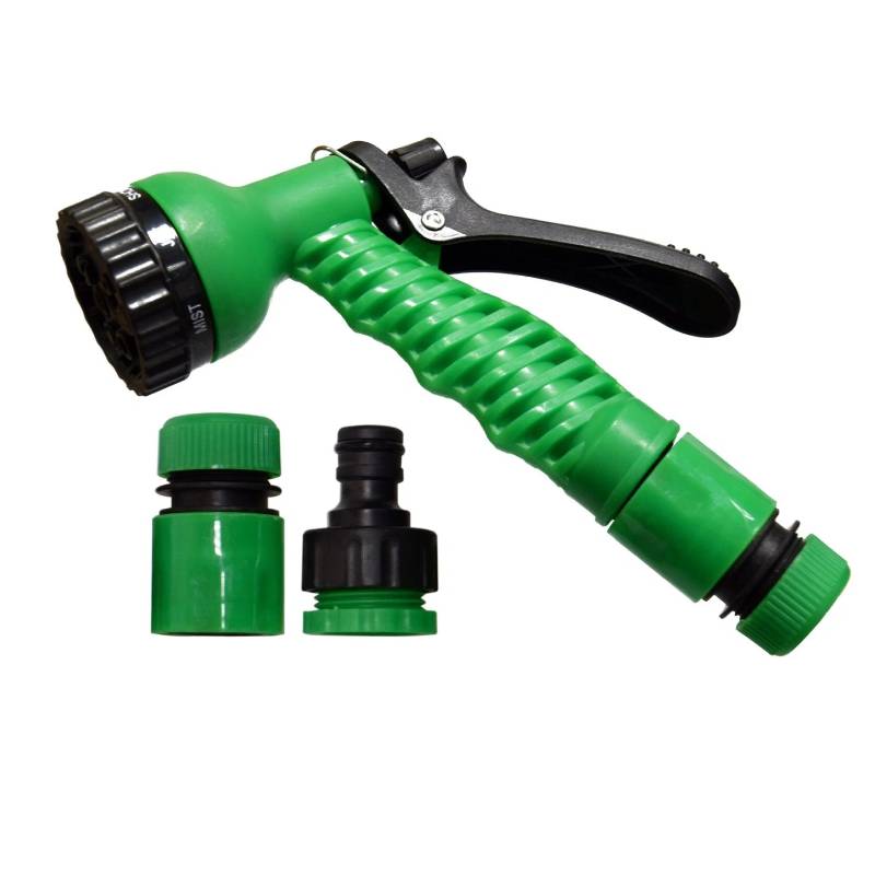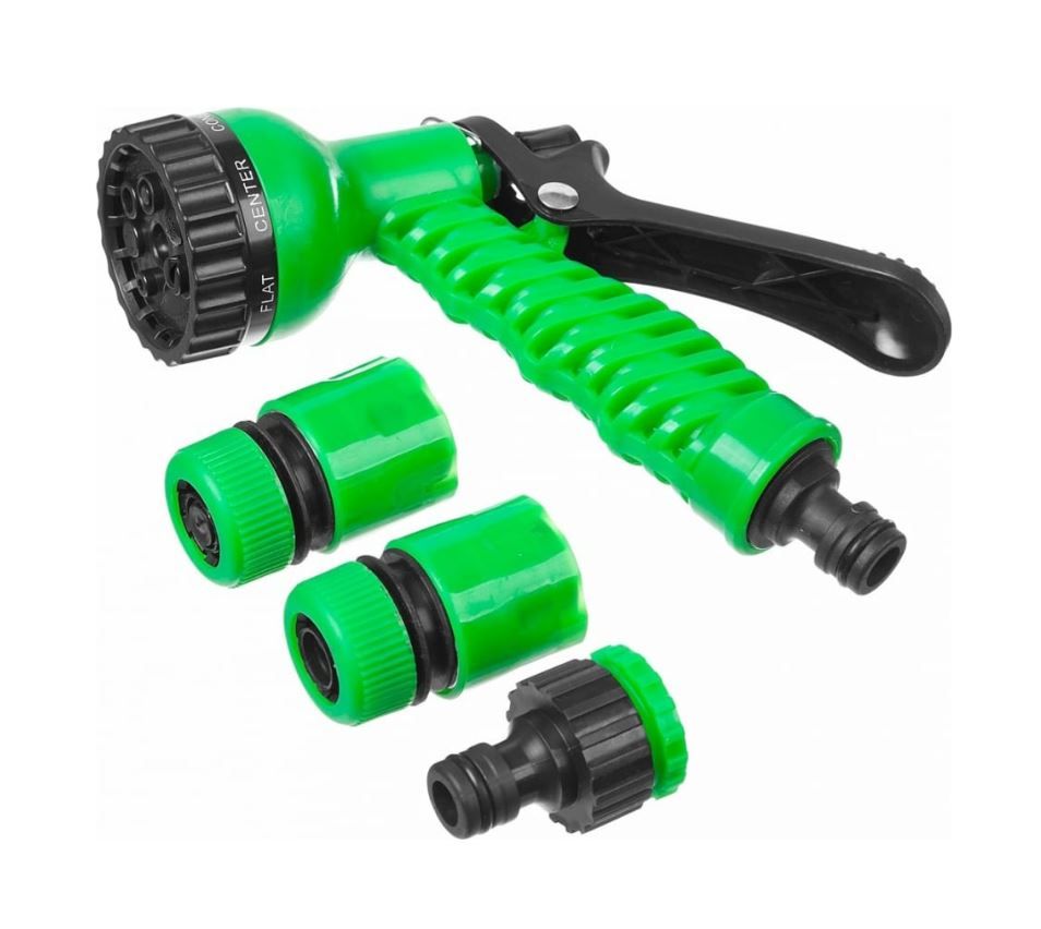 Пистолетный распылитель имеет 7 режимов и плавную регулировку струи, что позволяет выбрать наиболее оптимальный полив для того или иного вида растений.