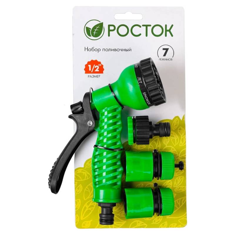 Набор поливочный (РОСТОК), пистолет с 7 режимами, комплект соединительной арматуры 1/2″.