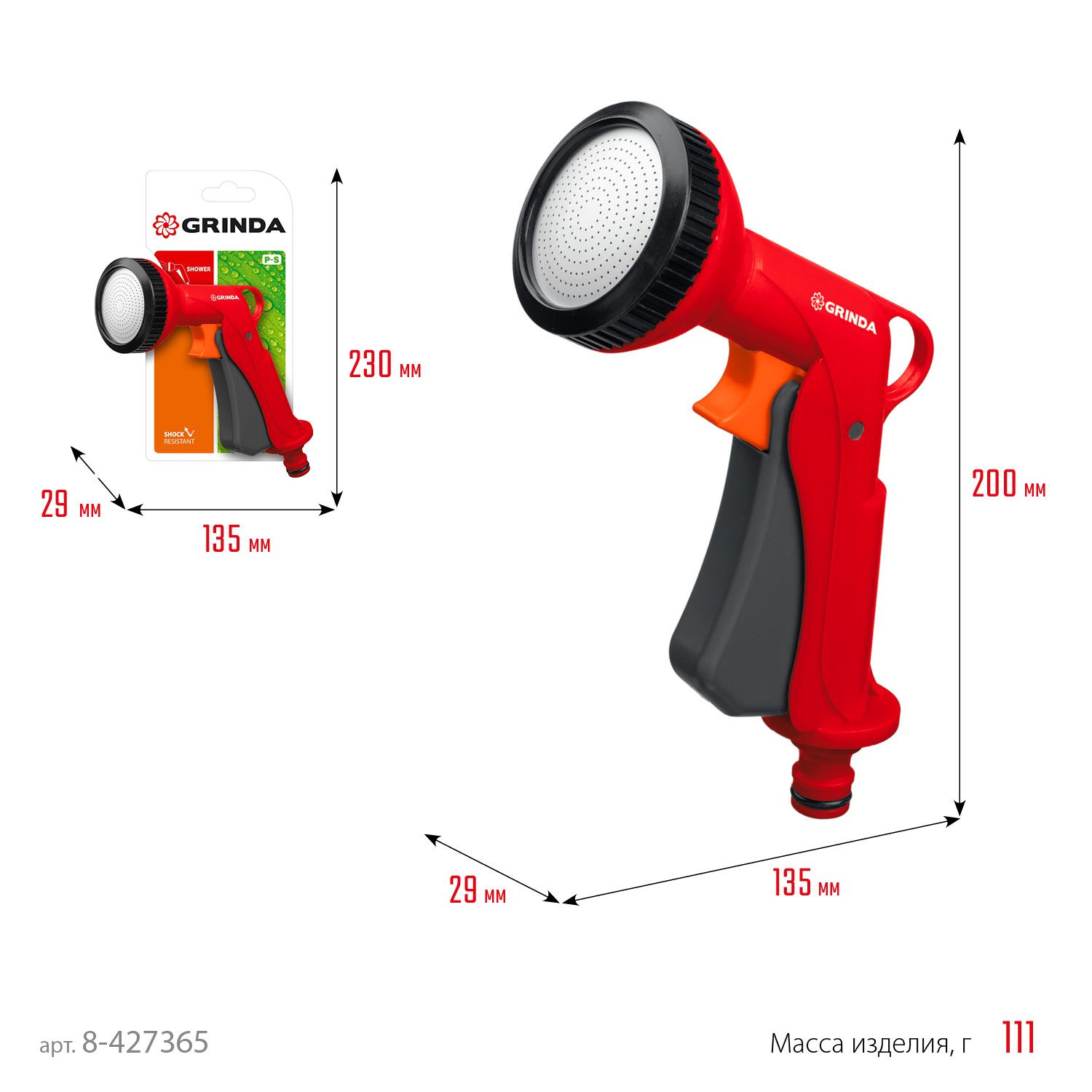 Поливочные пистолеты-распылители GRINDA удобны, надёжны и долговечны. Обеспечивают простое и качественное подключение к поливочной системе. Широкий модельный ряд с самыми современными и эффективными режимами полива.