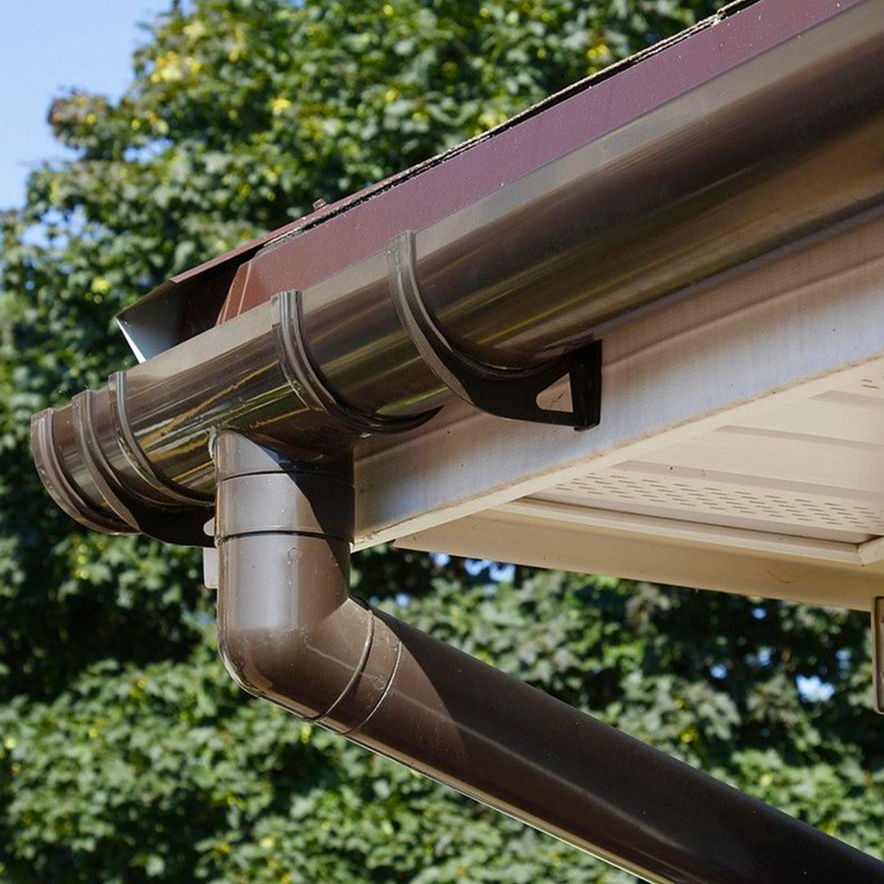 Диаметр желоба водостока напрямую зависит от площади крыши. Если крыша небольшая по площади, то можно использовать стандартный вариант желоба диаметром 115 мм. Если площадь крыши большая, выбирайте желоб с увеличенным диаметром 125 мм.Если форма крыши сложная или там, где вы живете, выпадают обильные осадки, то нужны желоба с диаметром больше стандартного. У пластиковой водосточной системы можно легко найти нужный диаметр труб и желобов.