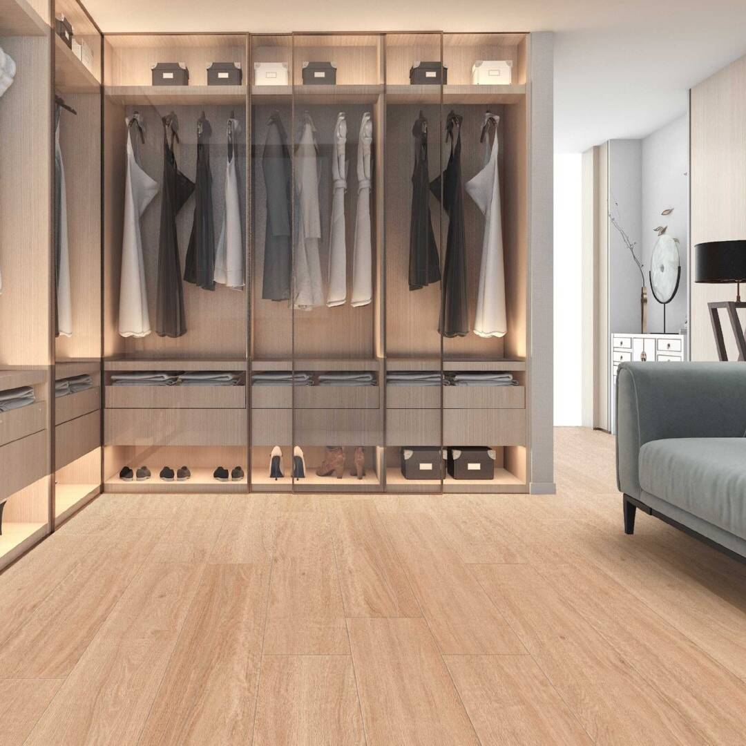 - Серые и коричневые оттенки и V-образная фаска создают ощущение натурального пола из дерева, а также не требуют особого ухода.