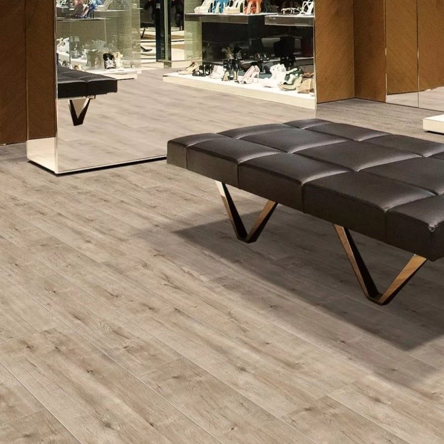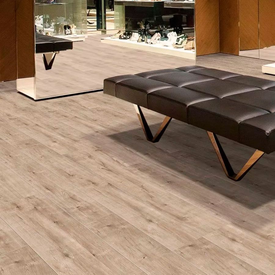 - Серые и коричневые оттенки и V-образная фаска создают ощущение натурального пола из дерева, а также не требуют особого ухода.