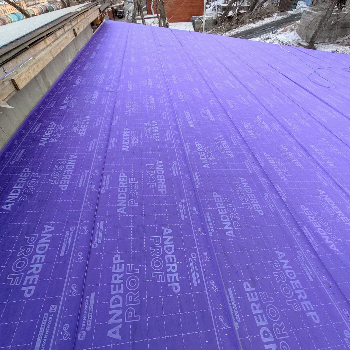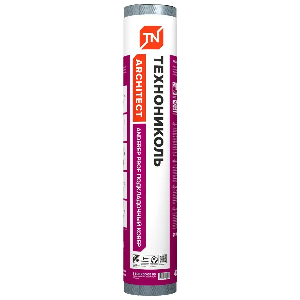 ANDEREP PROF — легкий (всего 0,4 кг/м2) и прочный подкладочный материал с основой из полиэфира. Нескользящая поверхность из полипропилена (Spunbond) гарантирует защиту от УФ. Подкладочный ковер используется под любой тип кровельного покрытия, а также может служить временной кровлей при перерывах в работе до 6 месяцев.