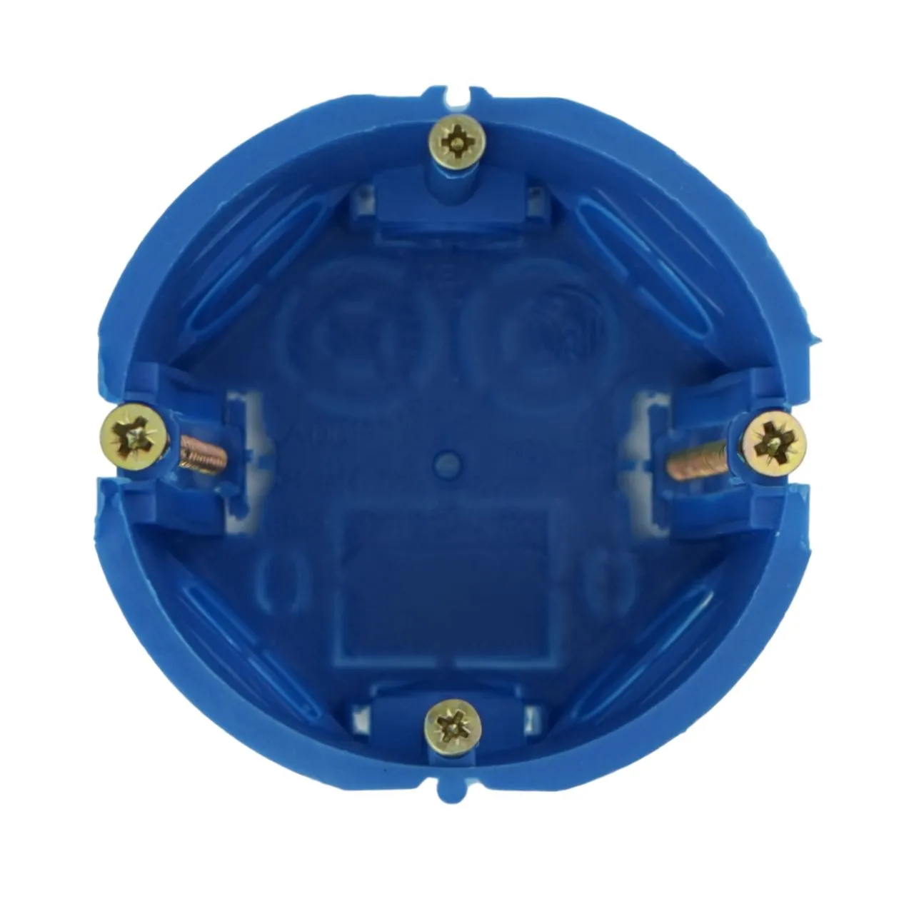 Коробка изготовлена из долговечного материала с подготовленными выводами, которые выламываются в зависимости от схемы подключения. Коробка защищает контакты от попадания пыли или мелкого мусора в полой стене.