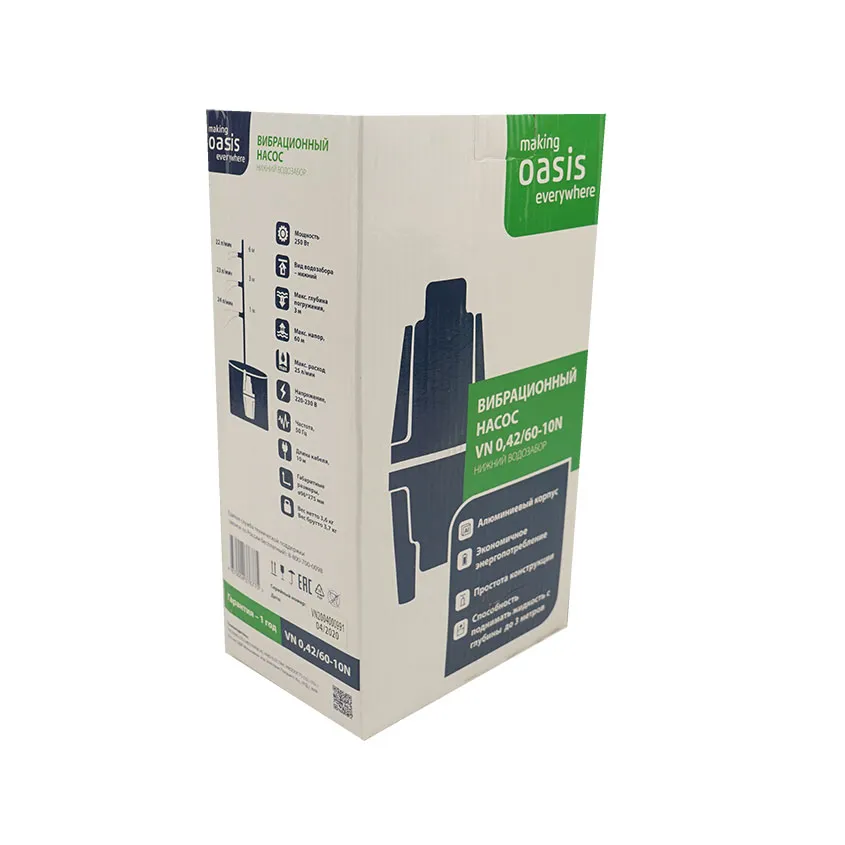 Насос вибрационный 250Вт, напор 60м, 1500 л/ч, кабель 10м, нижний водозабор, Oasis цена - купить в Барнауле, Бийске. Размеры, характеристики, фото в интернет-магазине.