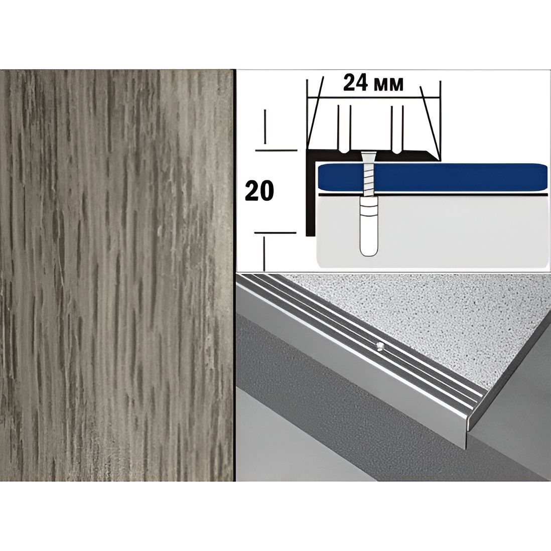 Порог алюминиевый Дуб пепельный, 900х24х20мм, угловой цена - купить в Барнауле, Бийске. Размеры, характеристики, фото в интернет-магазине.