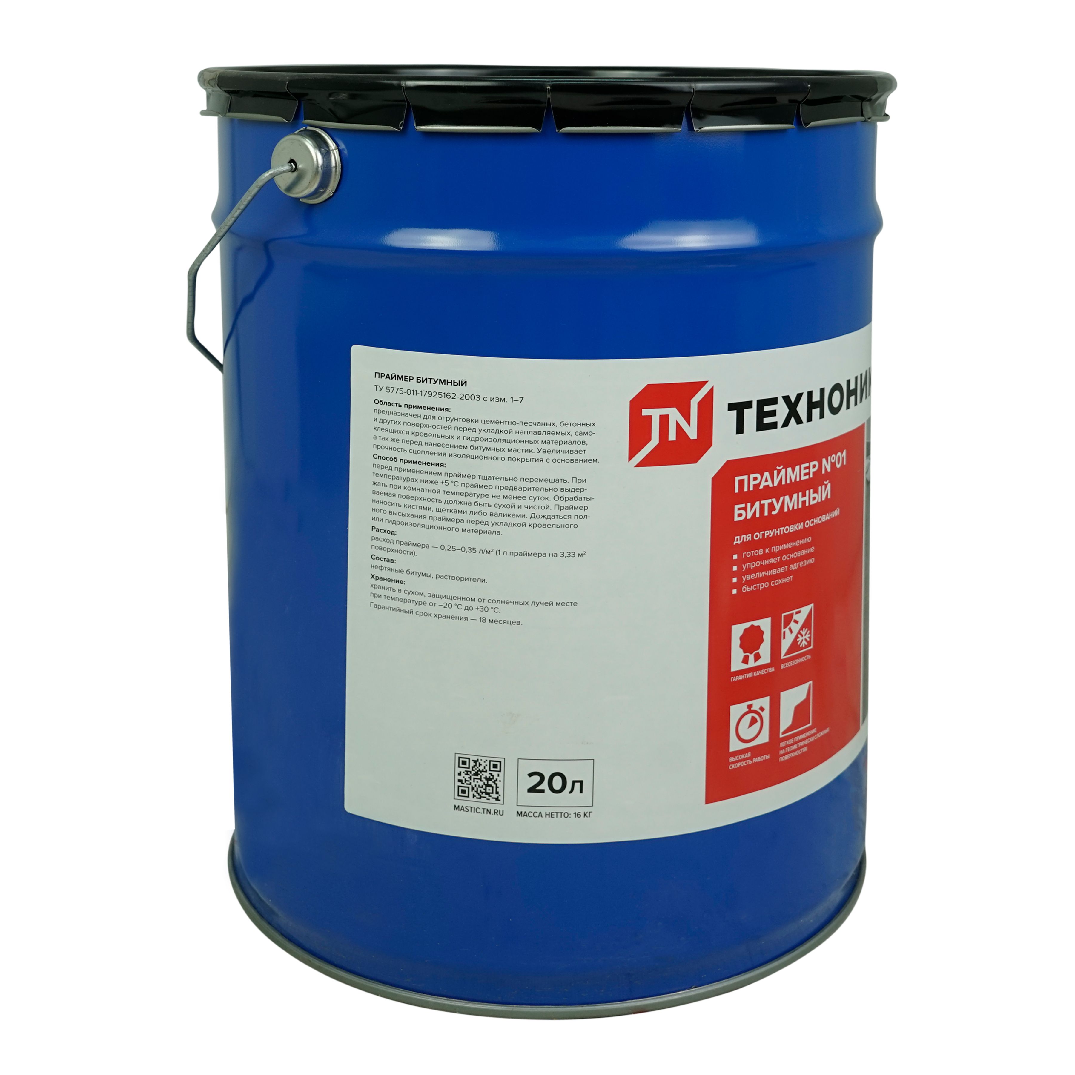Праймер битумный №01 (ТЕХНОНИКОЛЬ) 20л (16кг) цена - купить в Барнауле, Бийске. Размеры, характеристики, фото в интернет-магазине.