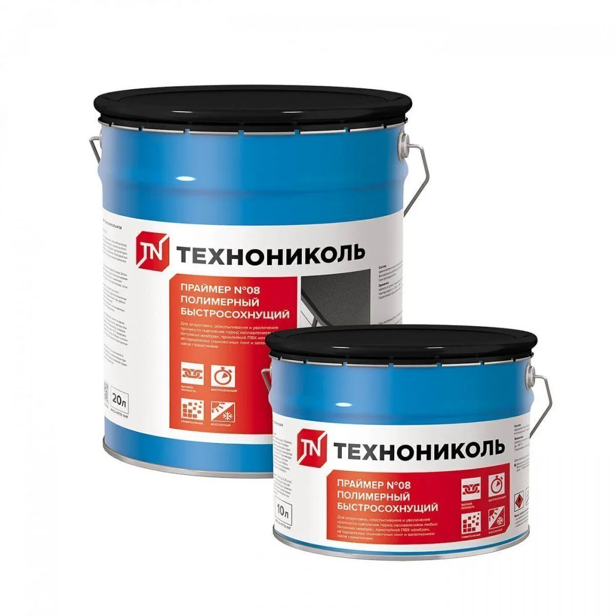 Праймер ТЕХНОНИКОЛЬ №08 изготовлен на основе полимеров и модифицирующих добавок. Состав используют для огрунтовки асфальтовых, бетонных, металлических, АЦЛ, ЦСП и прочих оснований. Праймер отлично обеспыливает и увеличивает прочность поверхности.