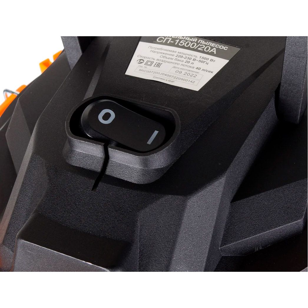 - Нержавеющий корпус бака строительный пылесос СП-1500/20А Вихрь гарантирует долговечность и стойкость к коррозии.