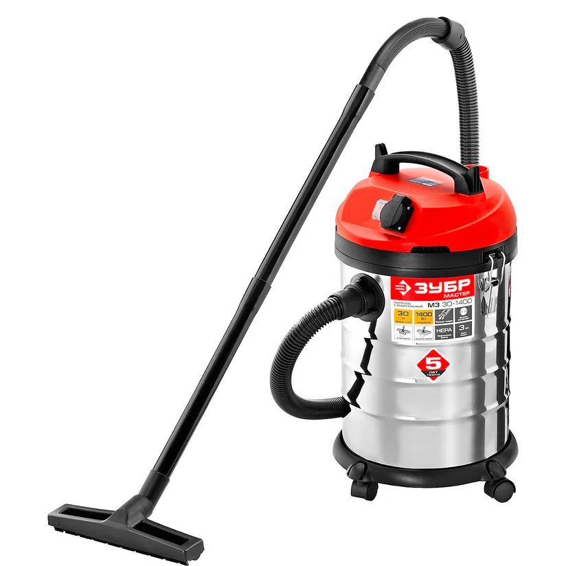 - Мощный двигатель строительного пылесоса ЗУБР МАСТЕР М3-30 ПУ-30-1400 М3 обеспечивает большую силу всасывания;