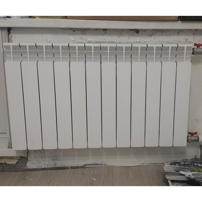 - Оптимизированный вес. Масса радиатора в 2 раза меньше аналогов за счёт тонкостенного алюминия (толщина стенок 1,2 мм), что упрощает переноску и крепление;