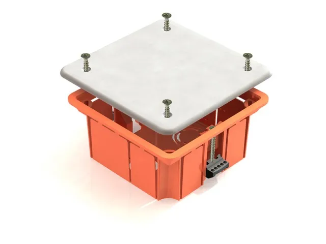 Распаячная коробка с крышкой оранжевого цвета.