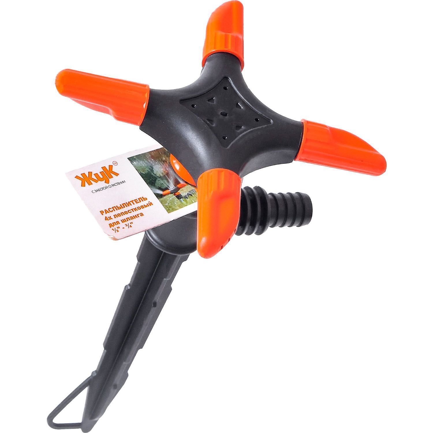 Распылитель 4-х лепестковый с универсальным штуцером для подключения шланга диаметром 1/2 и 3/4.