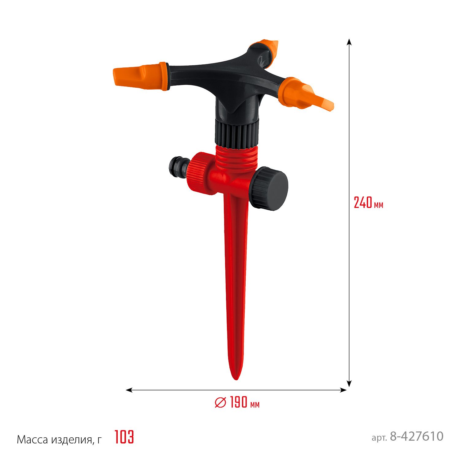 Распылитель оснащен специальной пикой, которая обеспечивает ему надежную фиксацию в грунте.