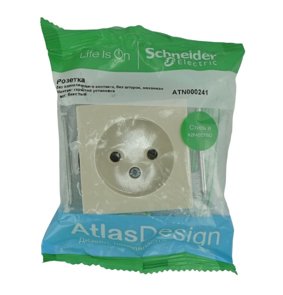 Розетка одинарная встраиваемая Atlas Design (Systeme Electric/Schneider Electric) 16А без заземления, бежевая (ATN000241) цена - купить в Барнауле, Бийске. Размеры, характеристики, фото в интернет-магазине.