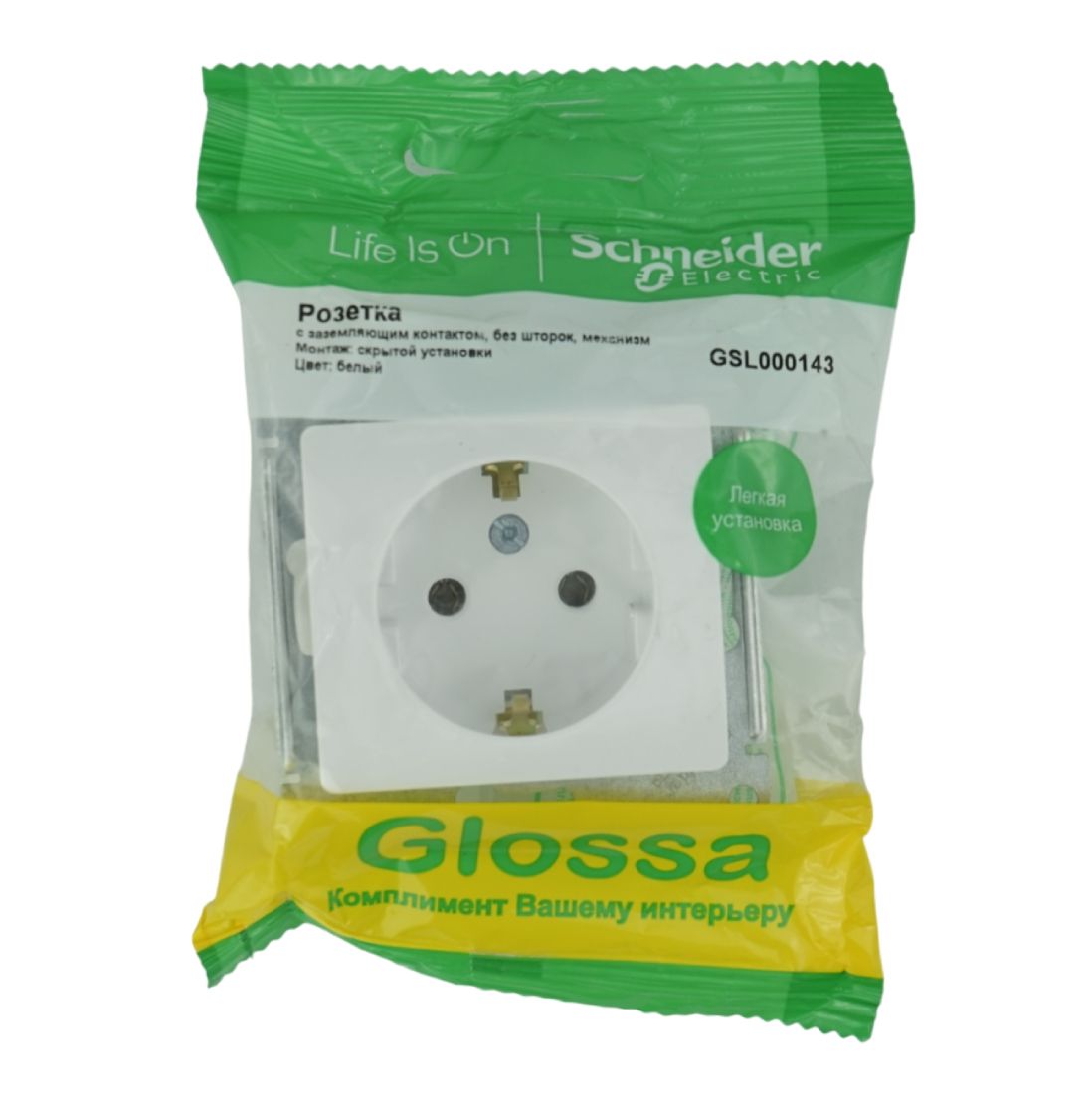 Розетка одинарная встраиваемая Glossa (Systeme Electric/Schneider Electric) 16А с заземлением, белая (GSL000143) цена - купить в Барнауле, Бийске. Размеры, характеристики, фото в интернет-магазине.