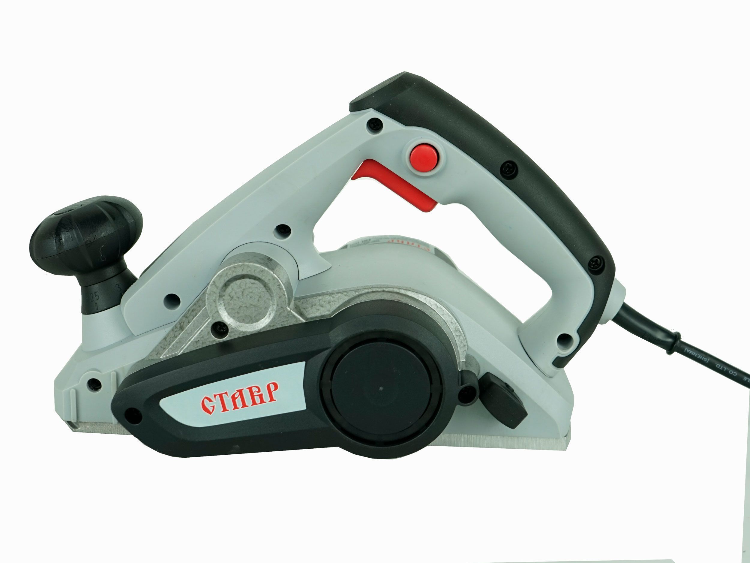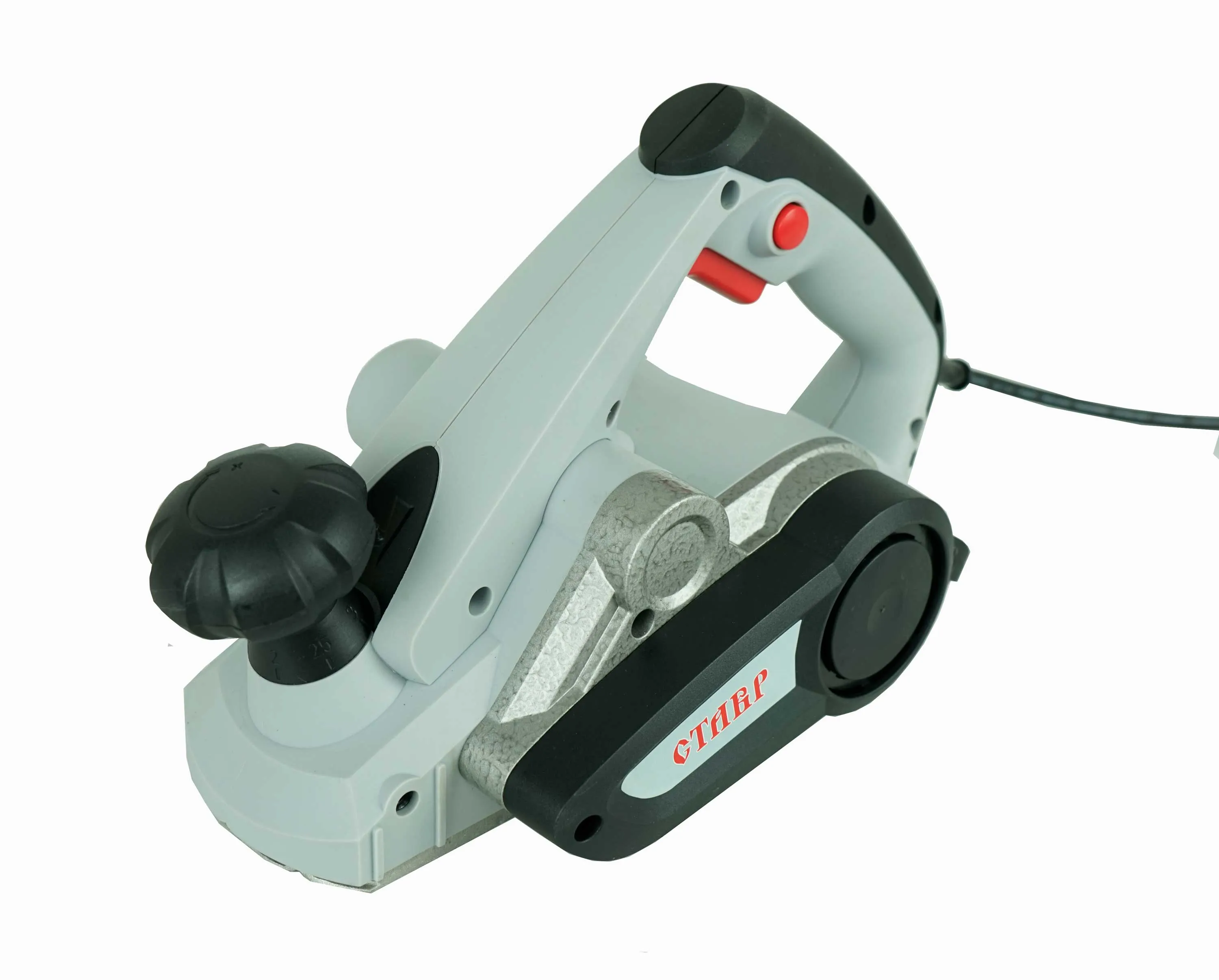 • Комбинированная рукоятка: Одновременно выполняет функции дополнительной рукоятки и регулятора глубины строгания;