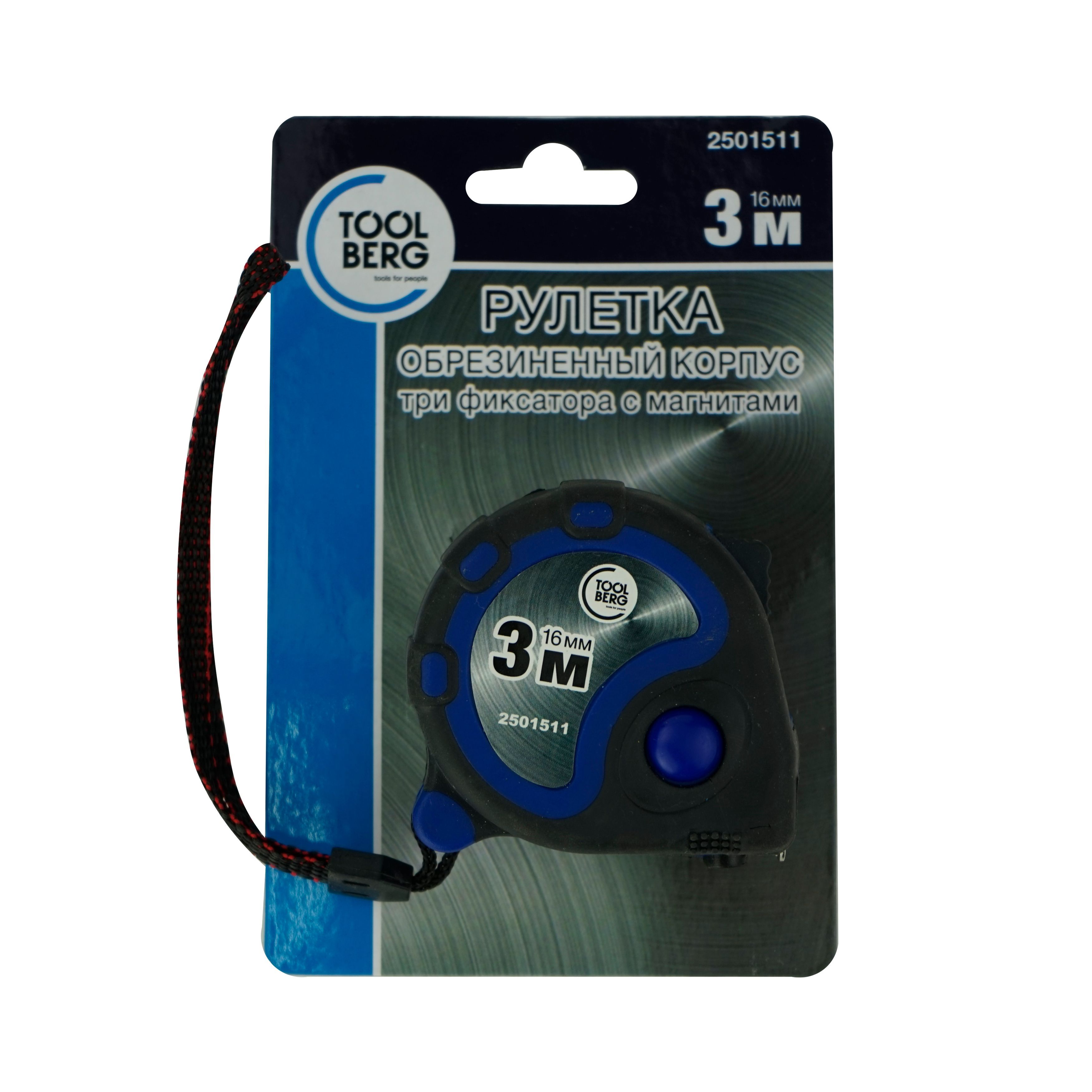 Рулетка (Т4Р) обрезиненный корпус, 3 фиксатора, магнит, 3мх16мм