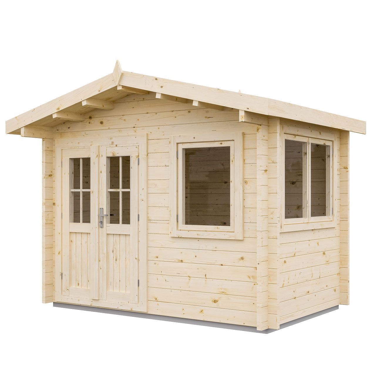Стеновой брус, фронтон, доска пола, фундаментная балка, плинтус, доска крыши, балка крыши, карниз, усилитель карниза, декор, крепеж, дверь остекленная, 2 окна, фурнитура.