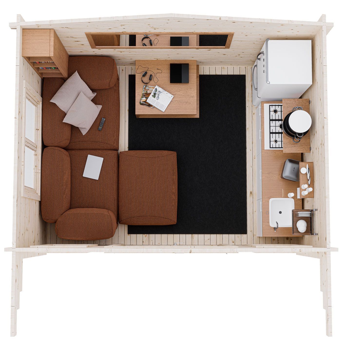 Этот дом разработан специально для того, чтобы создать дополнительное пространство для жизни. При размере 3,9×3 м его площадь составляет 9,9 м² уюта, сопровождаемого ароматом древесины. Входную зону можно дополнить террасой. Дом выполнен из качественных материалов, что обеспечивает его долговечность и надежность.