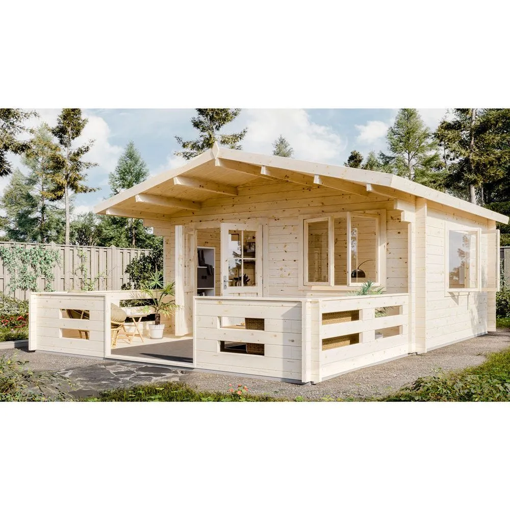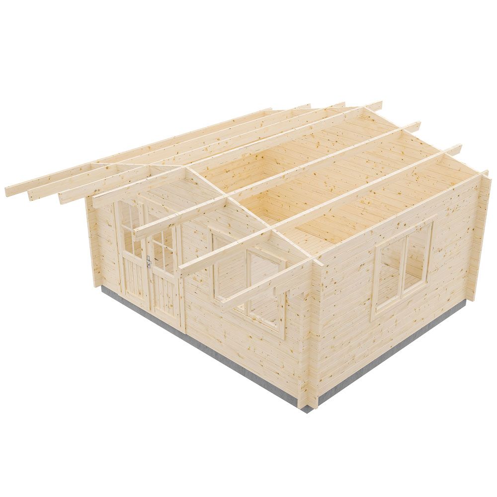 Этот садовый дом размером 5×4 м — отличное решение для тех, кто нуждается в дополнительном жилом пространстве. Его площадь составляет 17,5 м², что обеспечивает уютные условия для комфортного летнего проживания и отдыха. Широкий навес над входом защищает от неблагоприятных погодных условий.