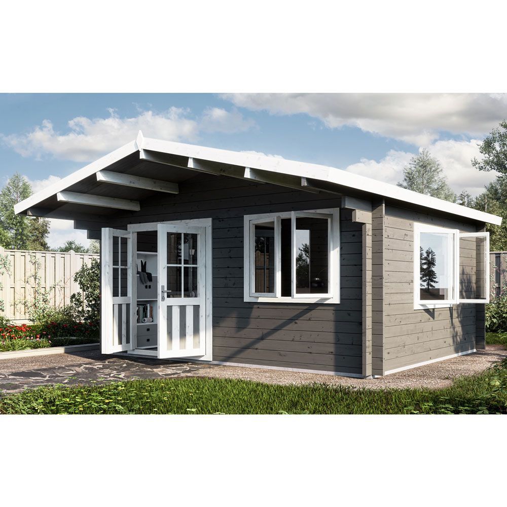 Этот садовый дом размером 5×4 м — отличное решение для тех, кто нуждается в дополнительном жилом пространстве. Его площадь составляет 17,5 м², что обеспечивает уютные условия для комфортного летнего проживания и отдыха. Широкий навес над входом защищает от неблагоприятных погодных условий.