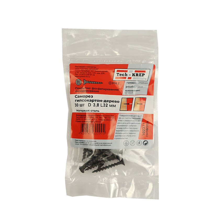 Используется для крепления легких конструкций (ГКЛ, ДСП, дерева, тонколистового металла) к деревянной обрешетке без предварительного сверления.