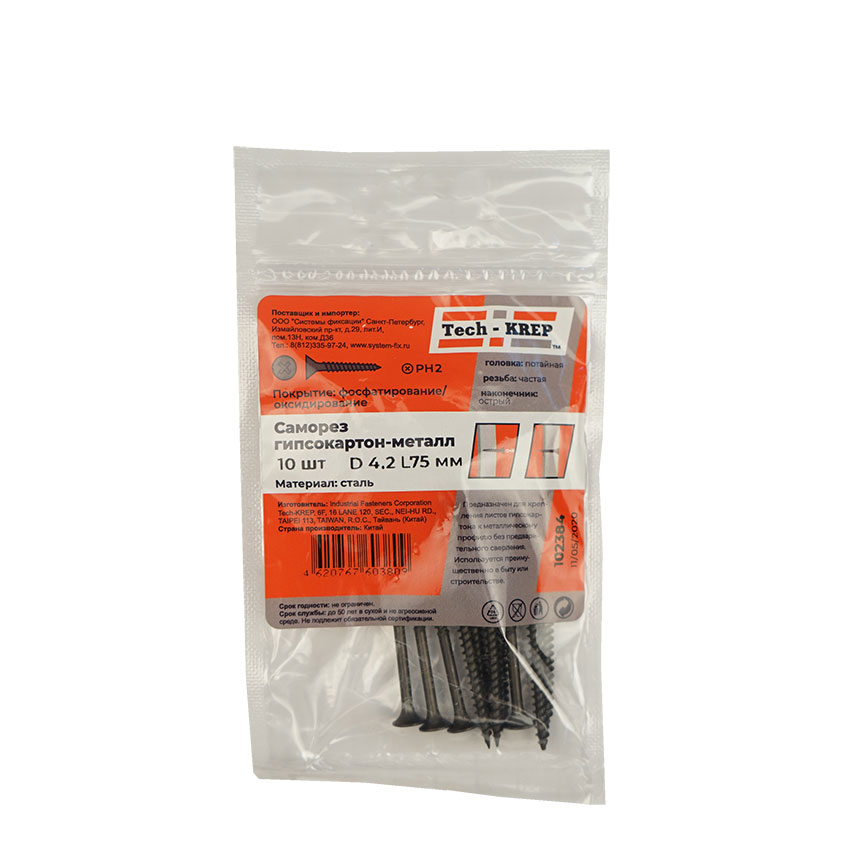 • Простое и удобное использование с помощью отвертки, шуруповерта или дрели (крестообразная форма головки, острый наконечник).
