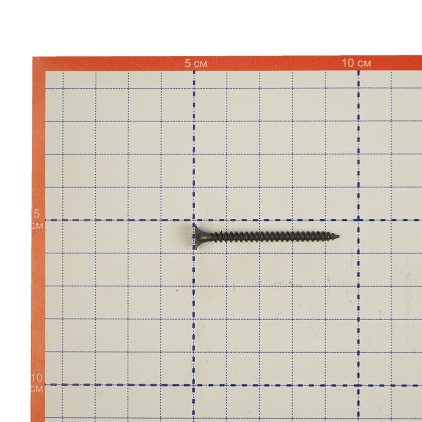 Саморез ШСГМ 3,5х45мм - стальной крепежный элемент, фосфатированный, с острым наконечником, потайной головкой, крестообразной формой шлица Ph2, частой резьбой, черного цвета.