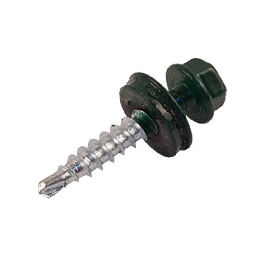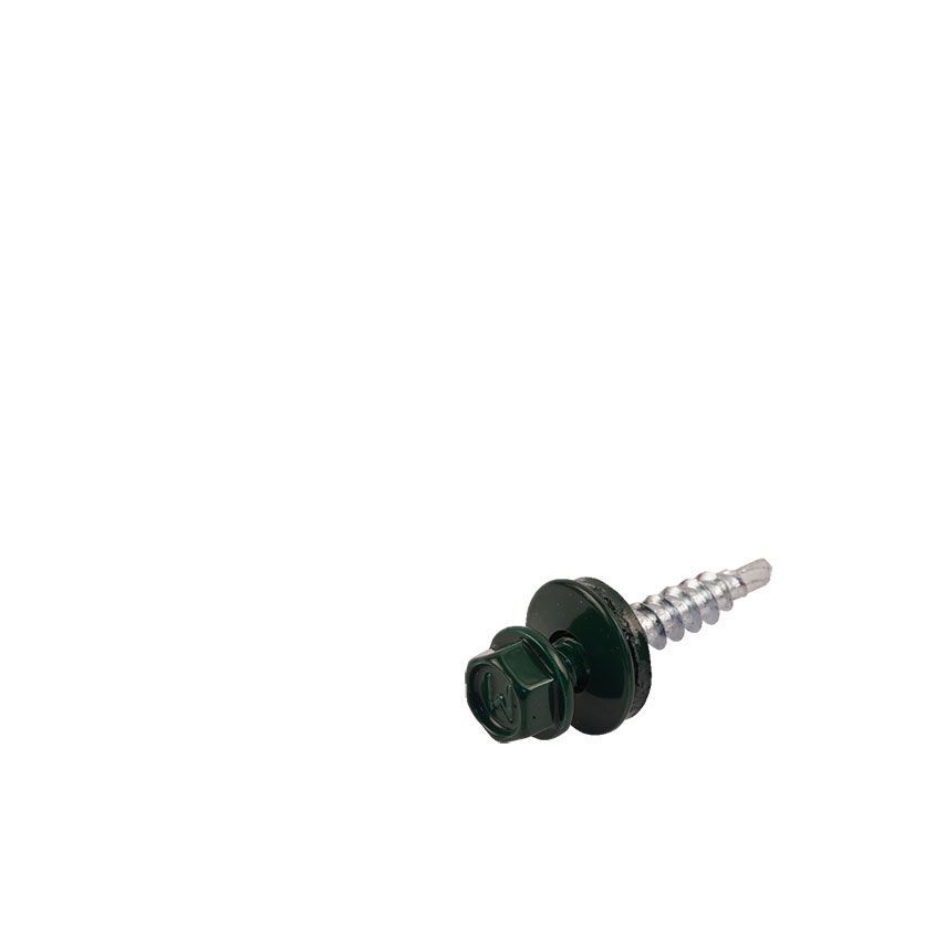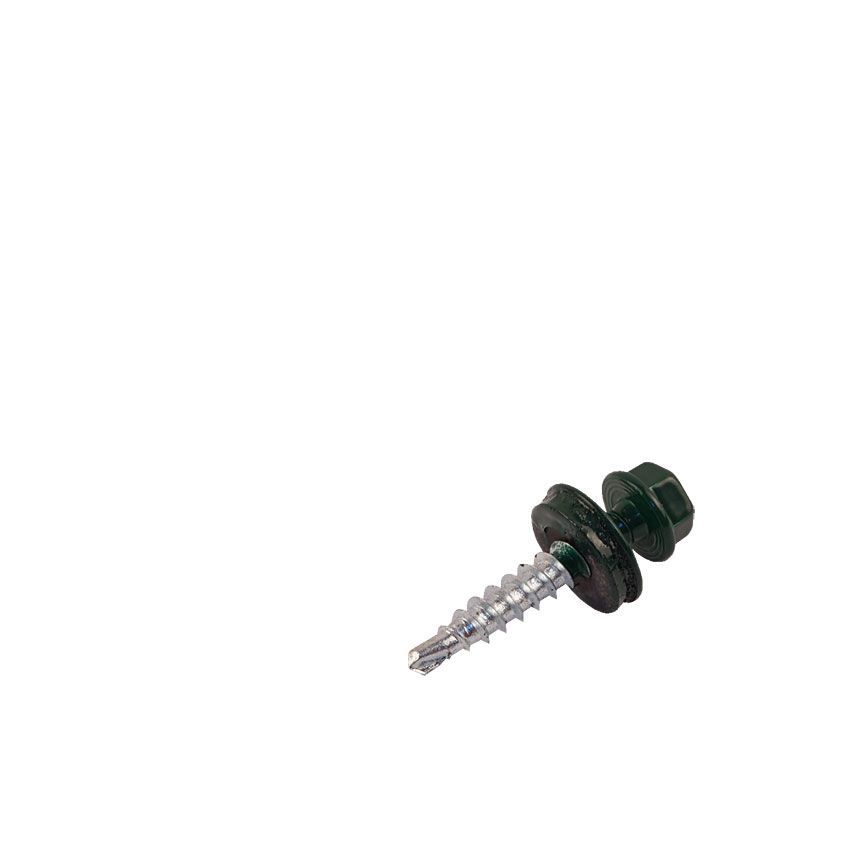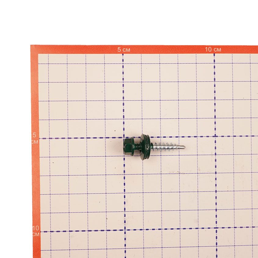Саморезы кровельные RAL-6005 зеленый зеленый 4,8х29мм - стальные саморезы с шестигранной головкой и со сверловидным наконечником, укомплектованные шайбой с резиновой прокладкой. Производятся из оцинкованной стали, имеют полную резьбу.